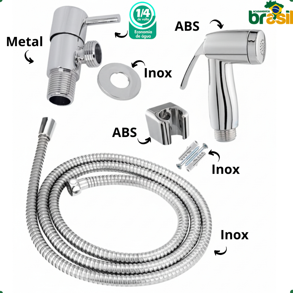 Ducha Higienica Metal Cromada 1/4 De Volta Gatilho Inox 1,20m Kit Completo Suporte Parafuso