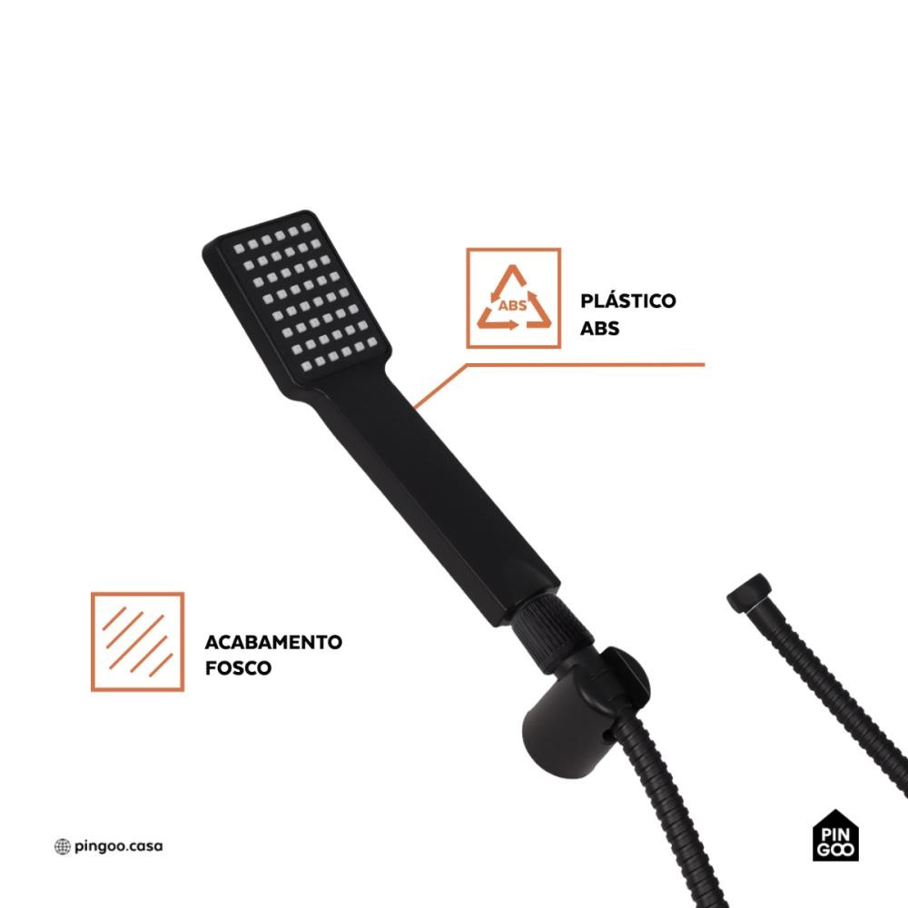 A Ducha Manual Jaci Pingoo é excelente para proporcionar praticidade e conforto no banho por ser um chuveiro de mão, que permite maior flexibilidade no direcionamento do jato de água, tornando o uso versátil e facilitando tarefas como higienização pessoal e limpeza do box, além de conter um design moderno que se se adapta a diferentes estilos de banheiro. Produzida em ABS de excelente qualidade, a ducha é resistente à umidade e ao desgaste, garantindo durabilidade e bom desempenho. Além disso, é compatível com nossa linha de produtos, permitindo integração harmoniosa e funcional no ambiente. Por ser projetada para uso no banheiro, a instalação pode ser realizada de forma simples, dependendo da compatibilidade com o sistema hidráulico existente. Uma solução prática para quem deseja mais conforto e eficiência no banho. Medidas: 7,5 (C) x 6,5 cm (L) x 26,5 cm (A) Cor: Preto Tipo de produto: Ducha Local de Uso: Banheiro Material: ABS Acabamento: Fosco Forma de instalação: Suporte Parede Peso do produto: 0,344Kgs Conteúdo da embalagem: 1 Ducha Manual Jaci Pressão mín e max: 0.3-0.5Mpa Tipo de mangueira: Flexível Arejador Integrado: Não É misturador: Não Vazão: 21.28-27.34L/Min