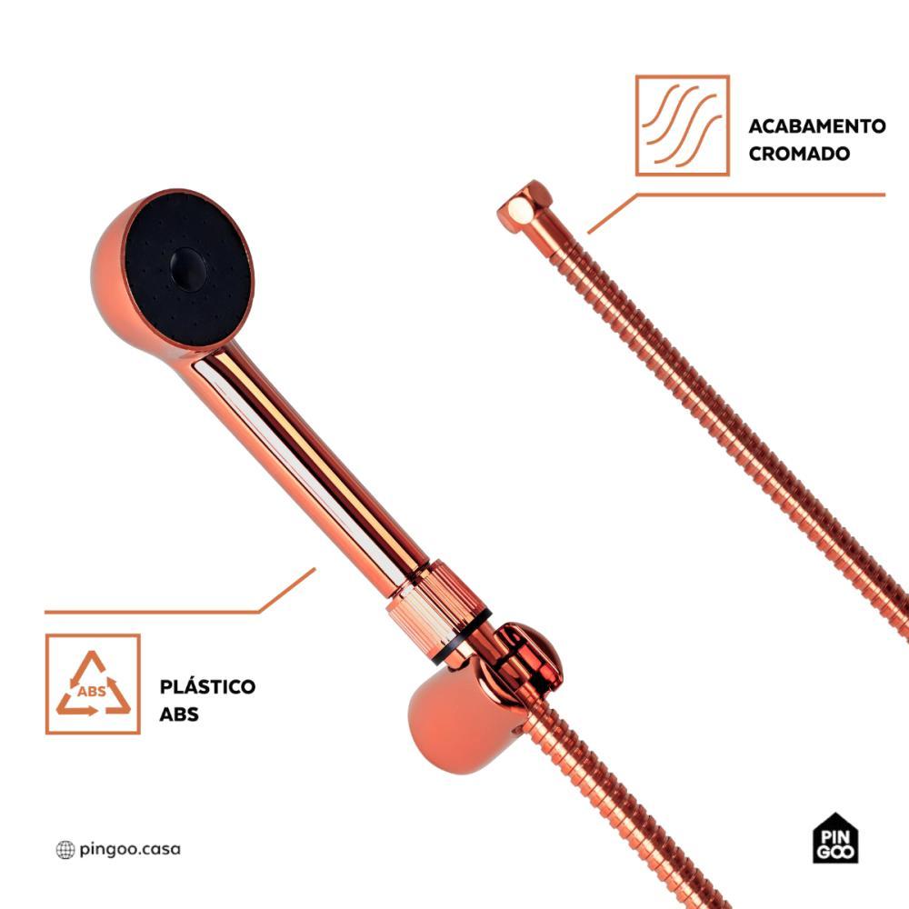 A Ducha Manual Piraju Pingoo é excelente para proporcionar praticidade e conforto no banho por ser um chuveiro de mão, que permite maior flexibilidade no direcionamento do jato de água, tornando o uso versátil e facilitando tarefas como higienização pessoal e limpeza do box, além de conter um design moderno que se se adapta a diferentes estilos de banheiro. Produzida em ABS de excelente qualidade, a Ducha é resistente à umidade e ao desgaste, garantindo durabilidade e bom desempenho, e por ser projetada para ser utilizada no banheiro, a instalação pode ser realizada de forma simples, dependendo da compatibilidade com o sistema hidráulico existente. Uma solução prática para quem deseja mais conforto e eficiência no banho. Medidas: 7,2 (C) x 6,1 cm (L) x 21,5 cm (A) Cor: Dourado Rose Tipo de produto: Ducha Local de Uso: Banheiro Material: ABS Acabamento: Cromado Peso do produto: 0,310Kgs Conteúdo da embalagem: 1 Ducha Manual Piraju Pressão mín e max: 0.3-0.5Mpa Tipo de mangueira: Não Cartucho Cerâmico: Não Extensível: Não Arejador Integrado: Não Entrada Filtro: Não É misturador: Não Vazão: 23.38-35.42L/Min