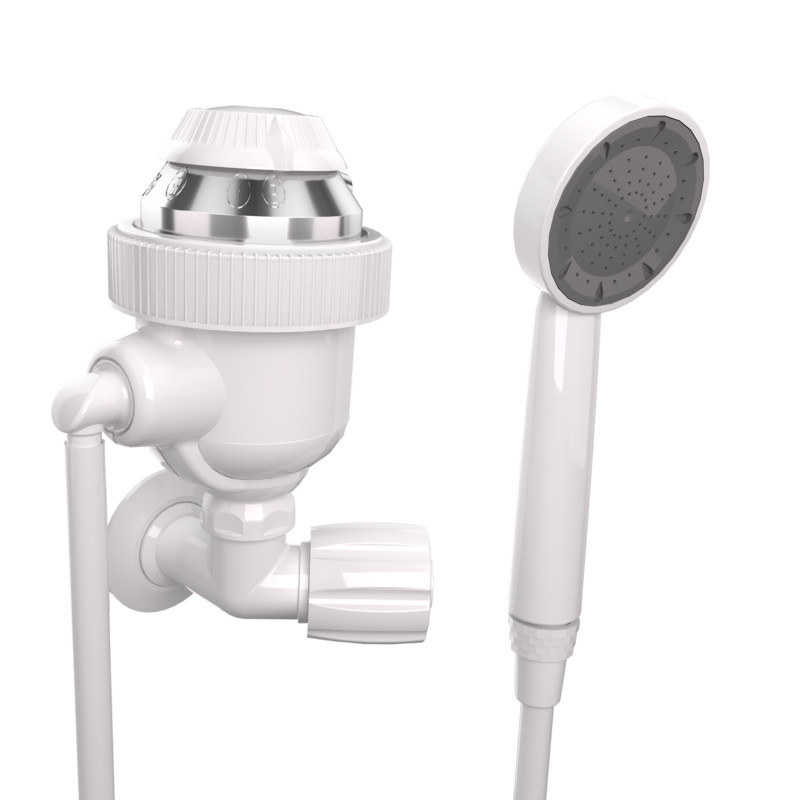 Ducha para uso profissional em Pet Shops; Torna o dia do profissional menos cansativo. Possui hand shower (ducha de mão) resistente e ergonômico com ótima empunhadura. Vantagens: -Economia de energia elétrica; -Possui 4 opções de regulagem para a temperatura da água, com destaque para posição econômica, quando o seletor está morno. -A água nunca fica pingando; -Registro d’água em cerâmica. -Rápido manuseio; -Registro d’água abre e fecha com ¼ de volta. -Mangueira com 1,70 metros; -Maior conforto e perfeito para o uso. -Instalação prática e fácil; -Acompanha manual de instalação do produto. -Para pressão acima de 80 KPa (8 m.c.a.) utilizar redutor de pressão. Características Técnicas: -Maior potência 220V - 7.000 W -Produto Montado/Instalado -Comprimento (cm): 10 -Largura (cm): 10 -Altura (cm): 17,5 -Embalagem do Produto -Comprimento (cm): 13 -Largura (cm): 23,5 -Altura (cm): 18 -Cor – Branco e cromado -Material do produto – Termoplásticos, elastômeros, ligas de: Prata, cobre, alumínio, cromo e níquel -Peso líquido – 0,527kg -Modelo – Elétrico / DPS270 -Modelo de resistência – RDT270 -Energia de alimentação – 220V -Potência – 7000W -Disjuntor – 40 A ATENÇÃO: NÃO OBSTRUIR A PASSAGEM DE ÁGUA DURANTE O USO. -Pressão de funcionamento mínimo – 20 K Pa (2 metros por coluna D’água) -Pressão de funcionamento máximo – 400 K Pa (40 metros por coluna D’água) 1 ANO DE GARANTIA