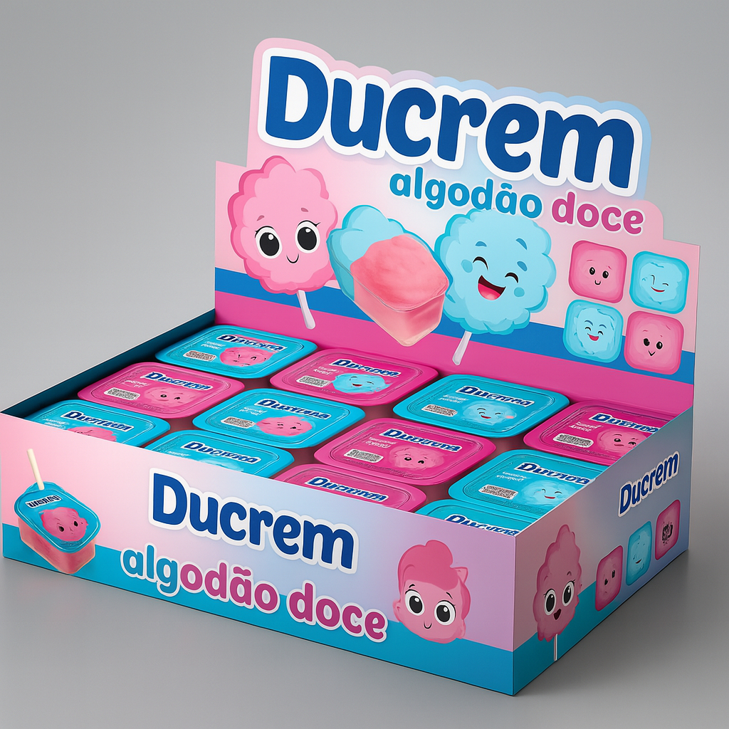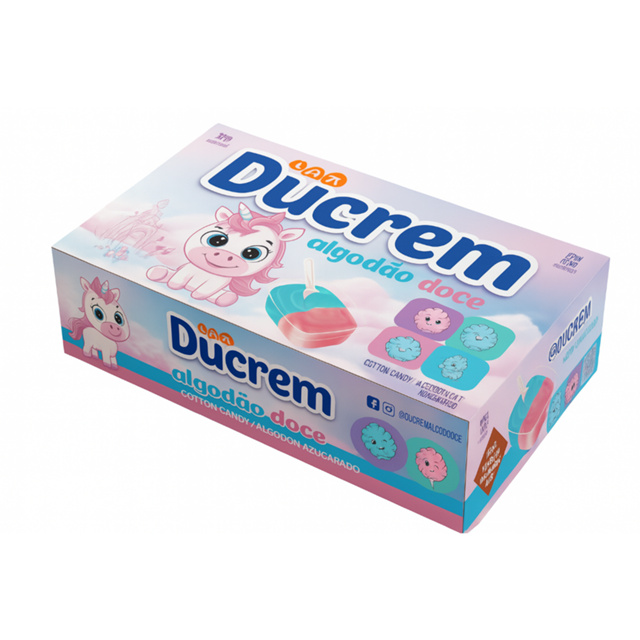 Ducrem Algodão Doce - jazam C/48 unidades 480g vem com a pazinha Encante seus clientes com o irresistível Ducrem Algodão Doce, agora em uma embalagem ainda mais fofa e atrativa com o tema de unicórnio! Cada unidade vem com algodão doce nas cores rosa e azul, remetendo à magia da infância, e embalagens individuais com personagens carismáticos. Ideal para festas, lembrancinhas ou pontos de venda que apostam em produtos que encantam à primeira vista. Destaques: Sabor suave e textura macia Embalagem lúdica e colorida com personagens divertidos Produto pronto para consumo Perfeito para crianças e amantes de doces nostálgicos Um toque doce de fantasia para sua loja ou evento!