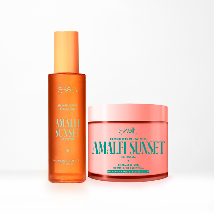 A dupla que te de deixa perfumada o dia inteiro, possui a fragrância que é sucesso em vendas. Esse duo foi desenvolvido para entregar alta perfumação, elevando o nível do seu ritual de beleza. O Perfume Mist Amalfi Sunset é o produto ideal para quem não abre mão de ficar perfumada o dia inteiro. Esse item de perfumaria possui uma fragrância de longa fixação, marcante e elegante. Pode ser usado tanto durante o dia quanto à noite. Ele é leve e possui uma aplicação prática o que permite que você carregue com facilidade para todos os lugares e reaplique sempre que achar necessário. Especialmente para quem tem uma rotina agitada, já que a sua aplicação é muito simples. O Hidratante Desodorante Amalfi Sunset garante uma pele hidratada por até 48 horas e ajuda a restaurar a barreira protetora cutânea instantaneamente. Com rápida absorção, ele estimula a renovação celular enquanto promove maciez intensa além de proporcionar uma perfumação única, irresistível e de longa duração. O Iluminador Corporal Skelt é uma maquiagem corporal com micropérolas iluminadoras. Em instantes, ele proporciona o tão desejado glow dourado, igual ao das celebridades no tapete vermelho. Eis o segredo dos famosos para uma pele dourada e iluminada! Além de dar brilho à pele, este Iluminador Corporal oferece um bronzeado suave e ajuda a disfarçar imperfeições como estrias e celulites. O produto tem durabilidade de 12 a 24 horas. Porque o Iluminador Corporal é pra você: Duração de 12 a 24 horas Pele dourada e iluminada Ajuda a disfarçar imperfeições Fácil aplicação