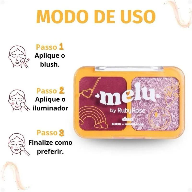 Duo Blush e Iluminador - Melu by Ruby Rose | Maquiagem | Envio Rápido