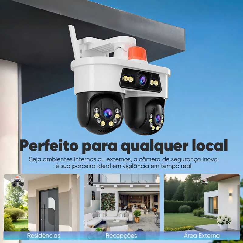 Camera Yoosee Externa, Camera Yoosee Wifi, Camera Seguranca Yoosee, Câmera Seguranca, Câmeras Com Audio, Câmera Externa, Câmera Wifi Externa HD, Câmera Sem Fio Com Microfone, Câmera Vigilancia Com Alarme. Câmera dome Wi-Fi 2.4G inteligente, uma unidade equivale a três câmeras tradicionais. Possui um suporte ajustável para instalação flexível em todas as direções. Suporta conectividade de rede sem fio; possui Bluetooth para emparelhamento rápido de rede; Opera nos modos colorido, infravermelho e alarme inteligente; incorpora luzes indicadoras vermelhas/azuis para alertas; Incorpora redução de ruído 2D/3D e ampla faixa dinâmica digital; Emprega tecnologia de compressão de vídeo H.265 para qualidade de imagem de alta definição; Inclui proteção contra raios para maior segurança e confiabilidade; Suporta comunicação de voz bidirecional para conversas sem esforço. Detecção de Corpo Humano e Rastreamento Automático: Utiliza algoritmo de AI para detectar corpos humanos com precisão e enviar alertas em tempo real. A tecnologia de rastreamento automático acompanha movimentos com visão panorâmica de 360° e ângulo vertical de 90°, gravando tudo dentro de 20 metros. Especificações Técnicas: Fabricante: Inova Cases Resolução: Full HD 1920*1080 Tipo de lente: Câmera Dupla Yoosee 360°+1 Câmera Fixa Tensão: 110-220V Instalação: EXTERNA, Interna, Parede Temperatura de operação: -10°C a 50°C Zoom digital: 12x Protocolo de conexão: Wi-Fi Controle via: Aplicativo YOOSEE Iluminação: Seção de lente fixa: 4 unidades lâmpadas integradas de duas cores com infravermelho de alta potência e luz branca Seção de lente esférica: 8 lâmpadas infravermelhas de alta potência + 8 lâmpadas de luz branca de alta potência Tecnologia noturna: Infravermelho e visão colorida Compatibilidade: Android/iOS Armazenamento: Cartão TF até 256GB* ou nuvem taxas adicionais Modo dia/noite: Automático Detecção inteligente: Ignora objetos, foca em humanos e animais Ambientes recomendados: Sala, escritório, corredor, áreas externas e portas. Conteúdo da embalagem: 1 Câmera de segurança 1 Manual de instruções 1 Kit de parafusos para instalação 1 Base para fixação em parede Perguntas Frequentes FAQ: P: Qual aplicativo usar? R: Utilize o aplicativo YOOSEE disponível para Android/iOS. P: Aceita cartão de memória? R: Sim, cartão TF até 256GB não incluso. Também suporta nuvem planos pagos.