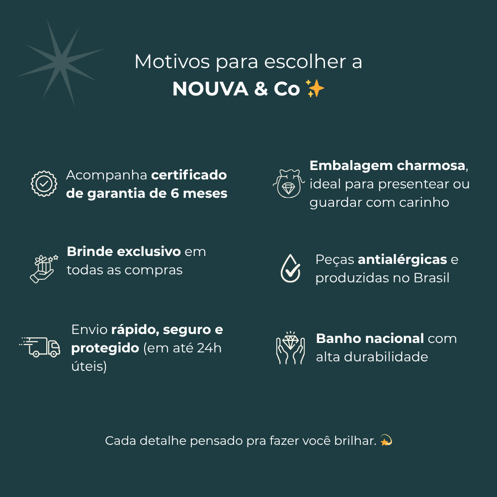 Dupla de Argola com Banho de Ouro 18k A Dupla de Argola com Banho de Ouro 18k é o equilíbrio perfeito entre o clássico e o delicado. Com design liso e toque de brilho no detalhe central, essas argolas trazem elegância discreta e versatilidade para o dia a dia. Leves e atemporais, são ideais para quem busca um acessório curinga — aquele que combina com tudo e adiciona um toque de sofisticação sutil a qualquer look. > Detalhes do Produto: - Banho: Ouro 18K - Tamanho: 1,6cm/1,3cm - Peso aproximado: 3.2g > Benefícios NOUVA: - Peças antialérgicas e produzidas no Brasil - Banho nacional com alta durabilidade - Acompanha certificado de garantia de 6 meses - Envio rápido, seguro e protegido (em até 24h úteis). - Brinde exclusivo em todas as compras - Embalagem charmosa, ideal para presentear ou guardar com carinho Ouro Mulher Presente Brinco Semijoia Brinco Leve Brinco Barato Semijoia Baratinha Brinco Orgânico Brinco pro dia a dia Dupla de Argola Banhada a Ouro Folheada a Ouro 18k Dupla de argola leve