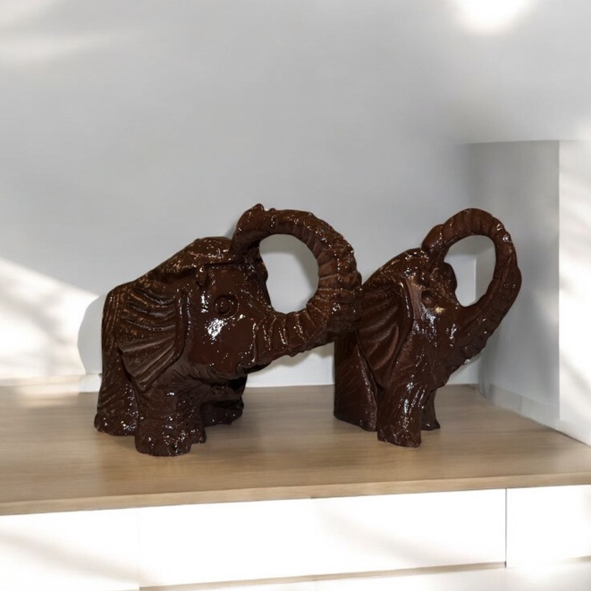 Dupla Elefante Decorativo Indiano Sabedoria Sorte - Decoração Sala Quarto ESPECIFICAÇÕES DOS PRODUTOS: - 2 elefantes Tipo: Decoração Material: Gesso de alta qualidade Fabricação: Artesanal Medida maior (A,L,C): 9x11x7 Medida menor (A,L,C): 7x9x4 Peso duas peças: 500g Qualquer outra dúvida, ficamos à disposição pelo campo de perguntas! Atenciosamente, Equipe Moldar