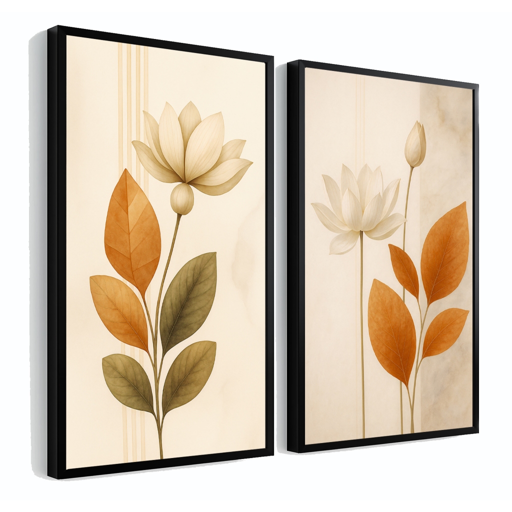 Dupla Quadros Folhagem Abstrata Moldura 40X60 cm Escritório