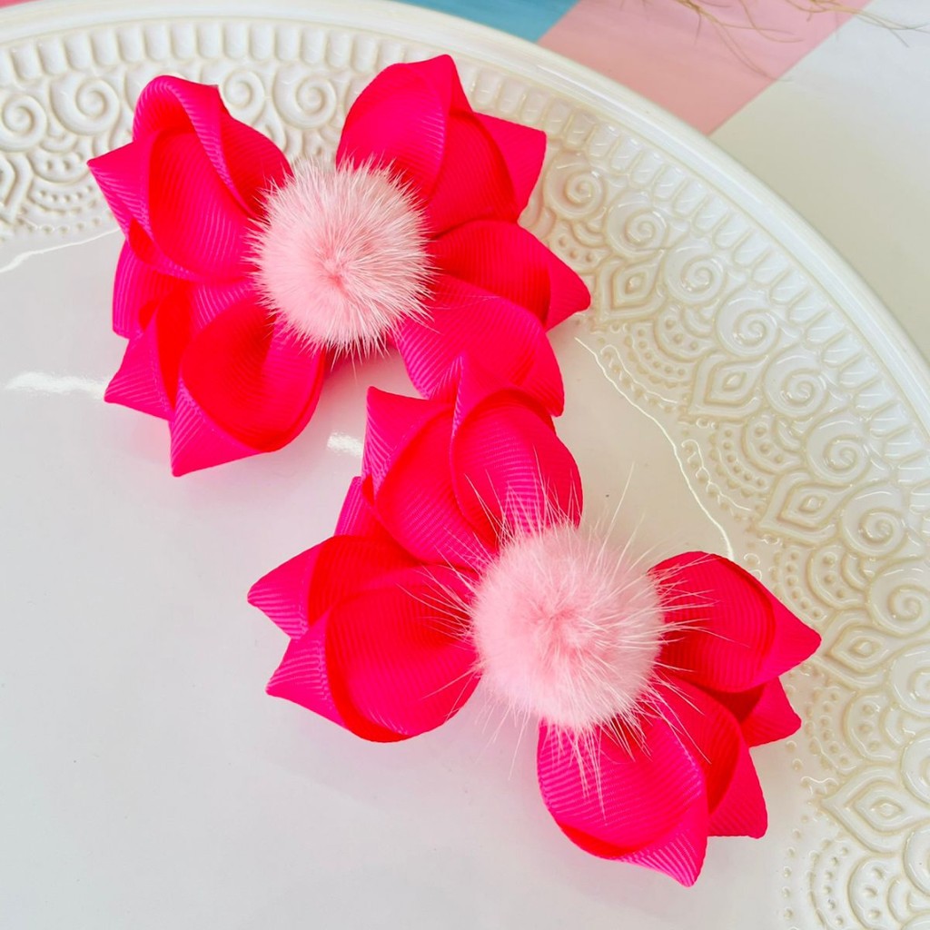 Duplinha de Laço Rosa Pink / Par de Laço Infantil / Dupla de Laço Rosa Pink / Laço F