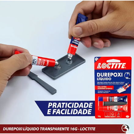 Faça reparos imperceptíveis e seguros com o Loctite Durepoxi LíquidoVocê quer fixar o vidro da mesa da sala de estar? A lente dos seus óculos soltou? Loctitite Durepoxi Líquido é a solução rápida e eficiente para os seus reparos cotidianos. Durepoxi Líquido é um adesivo epóxi indicado para uso profissional, doméstico e artesanal. Ele é excelente para colagens em diversos materiais como vidro, madeira, plásticos*, borracha vulcanizada, fibras naturais, cobre, prata e ouro. Sua fórmula extraforte possui secagem em 10 minutos e resistência total em 8 horas. Depois de seca, a cola líquida torna-se uma película incolor. Ela resiste à temperaturas de até 70ºC e adere mesmo exposto às condições submersas. O produto acompanha o kit completo de aplicação: bandeja e pá reutilizáveis.Antes de aplicar, certifique-se que as peças estão limpas e secas. Superfícies pintadas ou peças não porosas, recomenda-se lixar previamente. Comece colocando na bandeja que acompanha o produto, quantidades iguais da resina (parte A) e do endurecedor (parte B). Misture-as até ficarem homogêneas. Aplique imediatamente em uma das partes a serem coladas e junte-as pressionando até a secagem inicial. Caso necessário prense com o auxílio de uma fita. A secagem acontece em até 10 minutos. Após 8 horas, o produto adquire resistência final.Os benefícios do produto em resumo:Colagem extraforte e acabamento perfeitoAdequada para diversos materiais como vidro, plásticos*, cobre, prata e ouroSecagem transparente, resiste à temperaturas de até 70ºC e adere até debaixo d'águaTecnologia: epóxiCor: transparenteFormato: 2x8g = 16g*Não recomendado em materiais à base de PP, PE, PTFE ou silicone. Não indicado para aplicações em filtros de água ou peças em contato com alimentos. ** Aplicações com espessura >2mm.