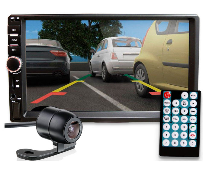 A Central Multimídia é o que falta para completar seu veículo. Player 2DIN com tela touch screen capacitiva widescreen de 7 polegadas. E o seu som automotivo de qualidade está garantido com este aparelho pois ele tem potência de 4x45 RMS por canal e várias opções de ajustes no equalizador. O Player ainda conta com entrada para câmera de ré. Ideal pra curtir suas músicas do jeito que preferir. Com o MP5 player automotivo da você também pode espelhar a tela do seu Android - IOS direto no visor, usando apenas um cabo USB. A Central Multimídia universal reproduz arquivos MP5, MP4, MP3, WMA, JPG e tem suporte compatível com cartão SD e uma entrada auxiliar frontal. Além disso o aparelho possui conexão bluetooth que compatível com reprodução de músicas e recebimento de chamadas telefônicas. A Central Multimídia universal é um acessório completo ideal pro seu carro. Conta com busca automática por estações e tem memória que guarda as estações de rádio FM. A Central Multimídia MP5 Universal além de proporcionar conforto e funcionalidade também agrega valor ao seu veículo, trazendo muita praticidade para quem dirige e quem o acompanha! ------------------------------------------------------------------------------------------- Frequência FM: 87,5 MHz - 108 MHz - Entradas: USB, cartão de memória SD / Auxiliar - Conexão Bluetooth - Suporta reprodução de vídeo HD (1080p) - Formatos de áudio suportado: MP1, MP2, MP3, WMA, WAV, FLAC, OGG, APE - Formatos de vídeo suportados: RM / RMVB / MP4 / MP5 / AVI / FLV / H263 / H264 / 3GP / SWF / ASF / MJPEG - Formatos de imagem suportados: JPEG / PNG / GIF etc. - Resposta de frequência: 20Hz a 20KHz - Relação sinal-ruído: 50dB - Alcance do rádio: 10.7MHz - Controle de som: ± 8 dB - Botões com iluminação de LED - Entrada para câmera de ré - Função relógio e mudo - Controle de graves e agudos - Dimensões aproximadas do produto (AxLxP): 10 x 17,2 x 6,5 cm Acompanha: MANUAL CONTROLE CABOS DE LIGAÇÃO APARELHO CÂMERA DE RÉ UNIVERSAL OBS: PRODUTO NÃO TEM LEITORA DE CD.