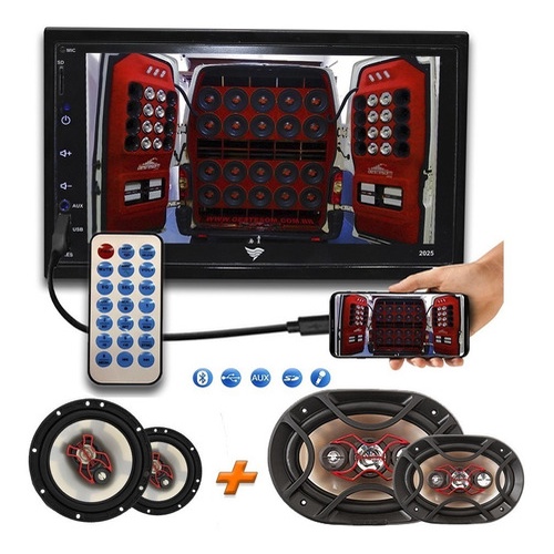 # OESTESOM # Itens incluso: - Dvd 2 Din Multimidia Bluetooth Usb Sd Tela 7 Hd Espelhamento - Auto Falante Triaxial Bravox 6 B3x60x 100w Rms Par - Par Alto-falante Quadriaxial 6x9 Bravox B4x69x 140rms -------------------------------------------------------------------------------------------- Dvd 2 Din Multimidia Bluetooth Usb Sd Tela 7 Hd Espelhamento: ESPECIFICAÇÕES TÉCNICAS Frequência FM: 87,5 MHz - 108 MHz - Entradas: USB, cartão de memória SD / Auxiliar - Conexão Bluetooth - Suporta reprodução de vídeo HD (1080p) - Formatos de áudio suportado: MP1, MP2, MP3, WMA, WAV, FLAC, OGG, APE - Formatos de vídeo suportados: RM / RMVB / MP4 / MP5 / AVI / FLV / H263 / H264 / 3GP / SWF / ASF / MJPEG - Formatos de imagem suportados: JPEG / PNG / GIF etc. - Resposta de frequência: 20Hz a 20KHz - Relação sinal-ruído: 50dB - Alcance do rádio: 10.7MHz - Controle de som: ± 8 dB - Botões com iluminação de LED - Entrada para câmera de ré - Função relógio e mudo - Controle de graves e agudos - Dimensões aproximadas do produto (AxLxP): 10 x 17,2 x 6,5 cm - Espelhamento - Possui cores diferentes para tecla / escolha qual a melhor cor combina com seu veiculo apenas pela configuração do aparelho. - Moderna ------------------------------------------------------------------------------------------------- Alto Falante Triaxial Bravox 6 B3x60x 100w Rms Par Características: - Tamanho: 6" POLEGADAS - Potência Real Wrms: 50WRMS - Impedância: 4 OHMS - Cone injetado em polipropileno - Bobina em corpo de alumínio - Borda injetada em santoprene - Ímã de fluxo magnético - Tweeter Mylar e Midrange ------------------------------------------------------------------------------------------------- Par Alto-falante Quadriaxial 6x9 Bravox B4x69x 140rms Características Técnicas: Modelo: B4X69X Linha: X OEM: 7892787019404 KIT: Não Tamanho: 6x9" Potência MÁX (W/total): 280 Potência RMS (W/total): 140 Sensibilidade: 88 Impedância (Ohms): 4 Resposta em frequência: 50 - 20K Frequência de ressonância: 65 Materiais do armação: Injetada em termoplástico Borda: Injetada em Santoprene Material do cone: Injetado em polipropileno Material do tweeter: Mylar Tipo de Alto-Falante: Quadraxial Tela de Proteção: Sim OESTESOM A MELHOR LOJA DE PRODUTOS AUTOMOTIVOS NA INTERNET!