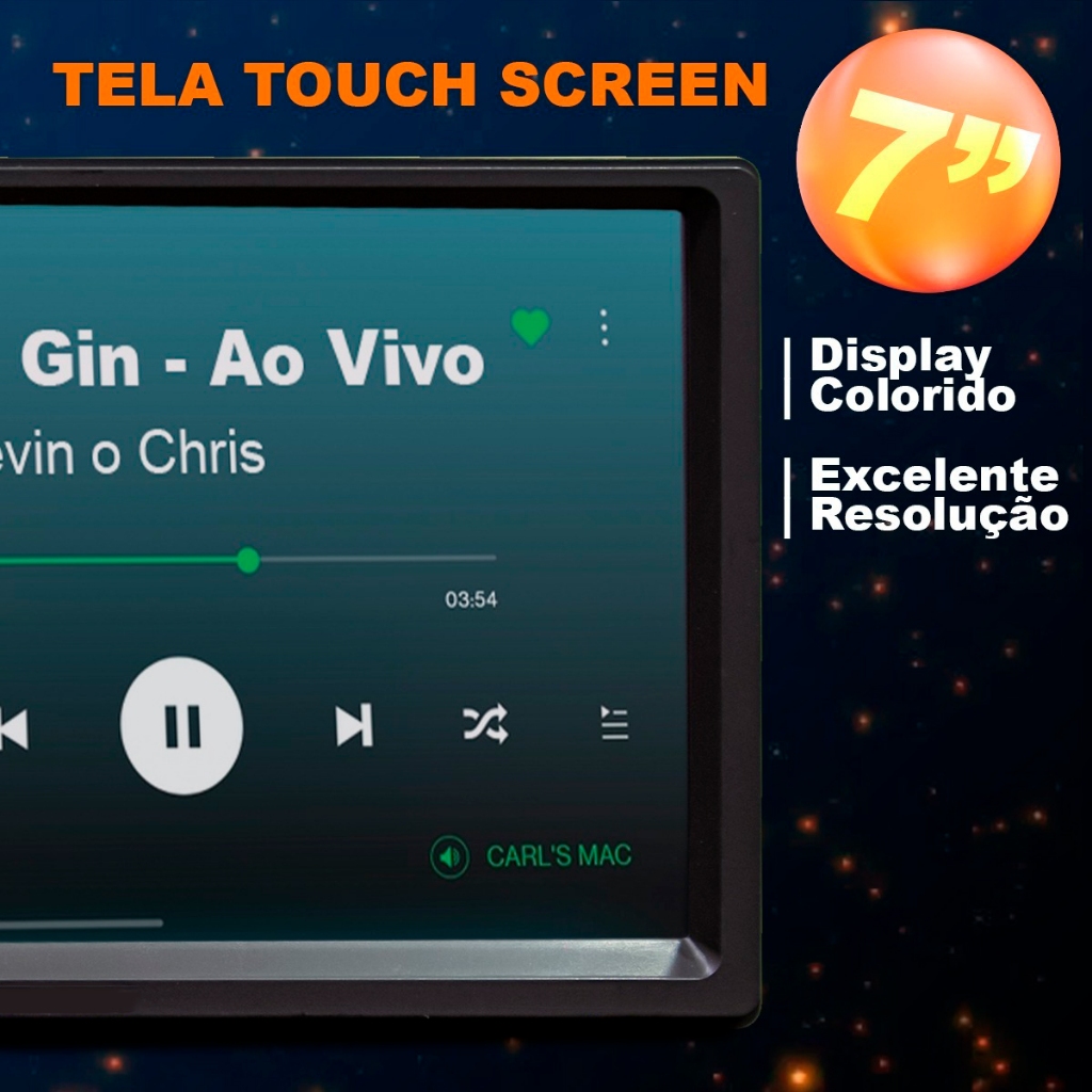 Dvd 2 Din Multimidia Bluetooth Usb Sd Tela 7 Hd Espelhamento Frequência FM: 87,5 MHz - 108 MHz - Entradas: USB, cartão de memória SD / Auxiliar - Conexão Bluetooth - Suporta reprodução de vídeo HD (1080p) - Formatos de áudio suportado: MP1, MP2, MP3, WMA, WAV, FLAC, OGG, APE - Formatos de vídeo suportados: RM / RMVB / MP4 / MP5 / AVI / FLV / H263 / H264 / 3GP / SWF / ASF / MJPEG - Formatos de imagem suportados: JPEG / PNG / GIF etc. - Resposta de frequência: 20Hz a 20KHz - Relação sinal-ruído: 50dB - Alcance do rádio: 10.7MHz - Controle de som: ± 8 dB - Botões com iluminação de LED - Entrada para câmera de ré - Função relógio e mudo - Controle de graves e agudos - Dimensões aproximadas do produto (AxLxP): 10 x 17,2 x 6,5 cm - Espelhamento de tela ANDROID - Não compatível com telas de encosto de cabeça OESTESOM A MELHOR LOJA DE PRODUTOS AUTOMOTIVOS NA INTERNET! Garantia de 90 dias.