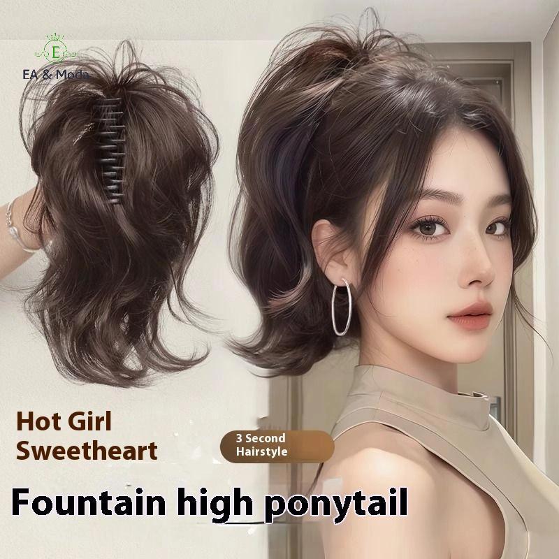 EA & Moda Sintético Ondulado Rabo De Cavalo Extensão Peruca Curto Encaracolado Garra Clipe Para Mulheres Resistente Ao C
