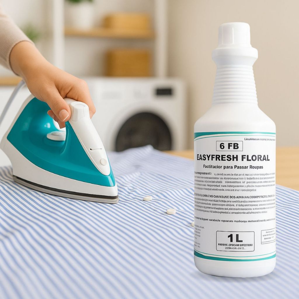 Easyfresh Floral – Finalizador para Passar Roupas 1L Deixe suas roupas impecáveis com o Easyfresh Floral, o toque final que transforma a passadoria em um momento leve e perfumado. Desenvolvido como um finalizador de passadoria, ele confere maciez, perfume floral e frescor duradouro, deixando as peças com aparência de novas e cheirinho irresistível de limpeza. Sua fórmula especial facilita o deslizar do ferro, reduz os amassados e garante um toque suave nas fibras do tecido, tornando o processo de passar muito mais prático e agradável. Destaques do Produto Perfume Floral Delicado e Duradouro Facilita o Passar e Reduz Vincos Deixa as Roupas Mais Macias e Renovadas Toque de Frescor e Sensação de Limpeza Prolongada Ideal para Uso Doméstico e Lavanderias Profissionais Modo de Uso Agite bem antes de usar. Aplique o Easyfresh Floral diretamente sobre a roupa seca ou levemente úmida, mantendo uma distância de aproximadamente 20 cm. Passe o ferro normalmente. Para um perfume mais intenso e toque extra de maciez, reaplique nas áreas desejadas. Para um aroma mais suave, dilua o produto na proporção de 1:10 (uma parte do produto para dez partes de água). Conteúdo: 1 litro Indicado para: Todos os tipos de tecidos laváveis — roupas do dia a dia, cama, mesa e banho.