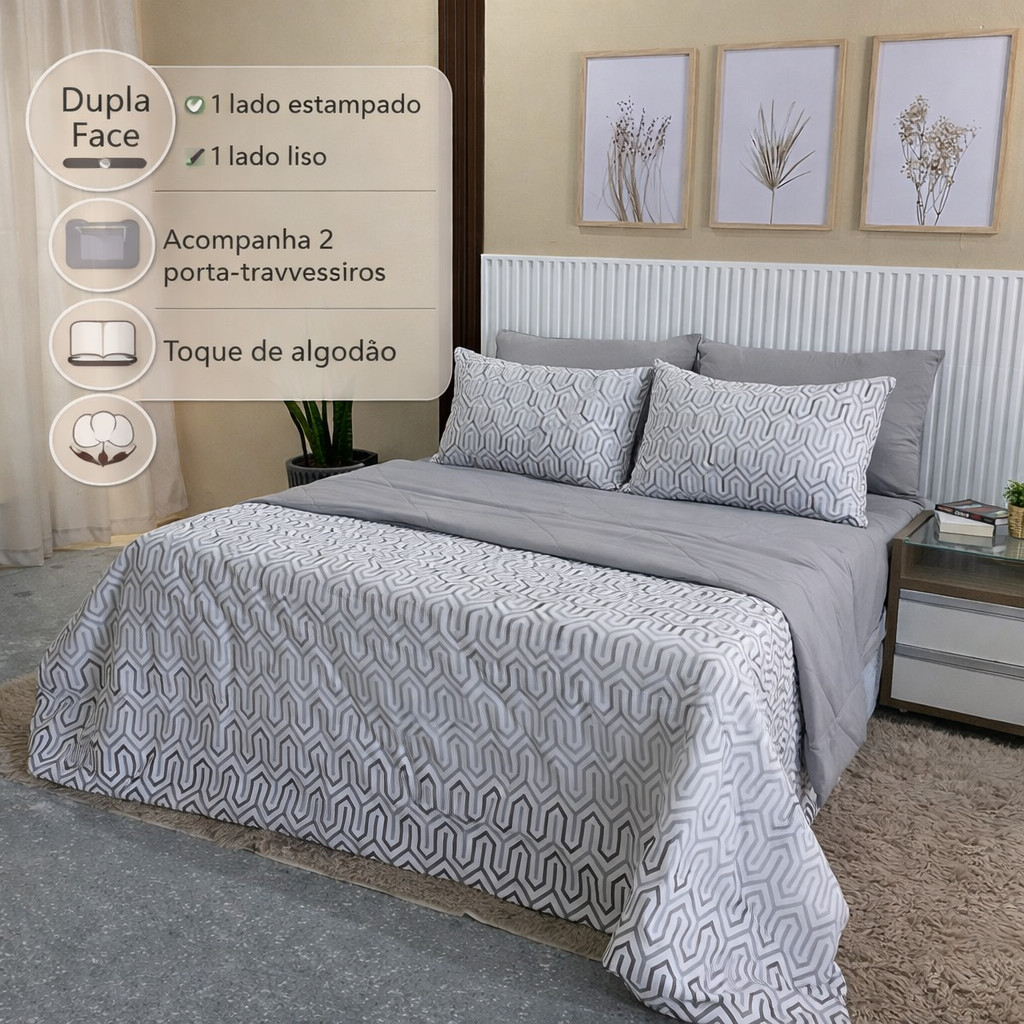 edredom casal queen com 2 Porta travesseiro toque de algodão