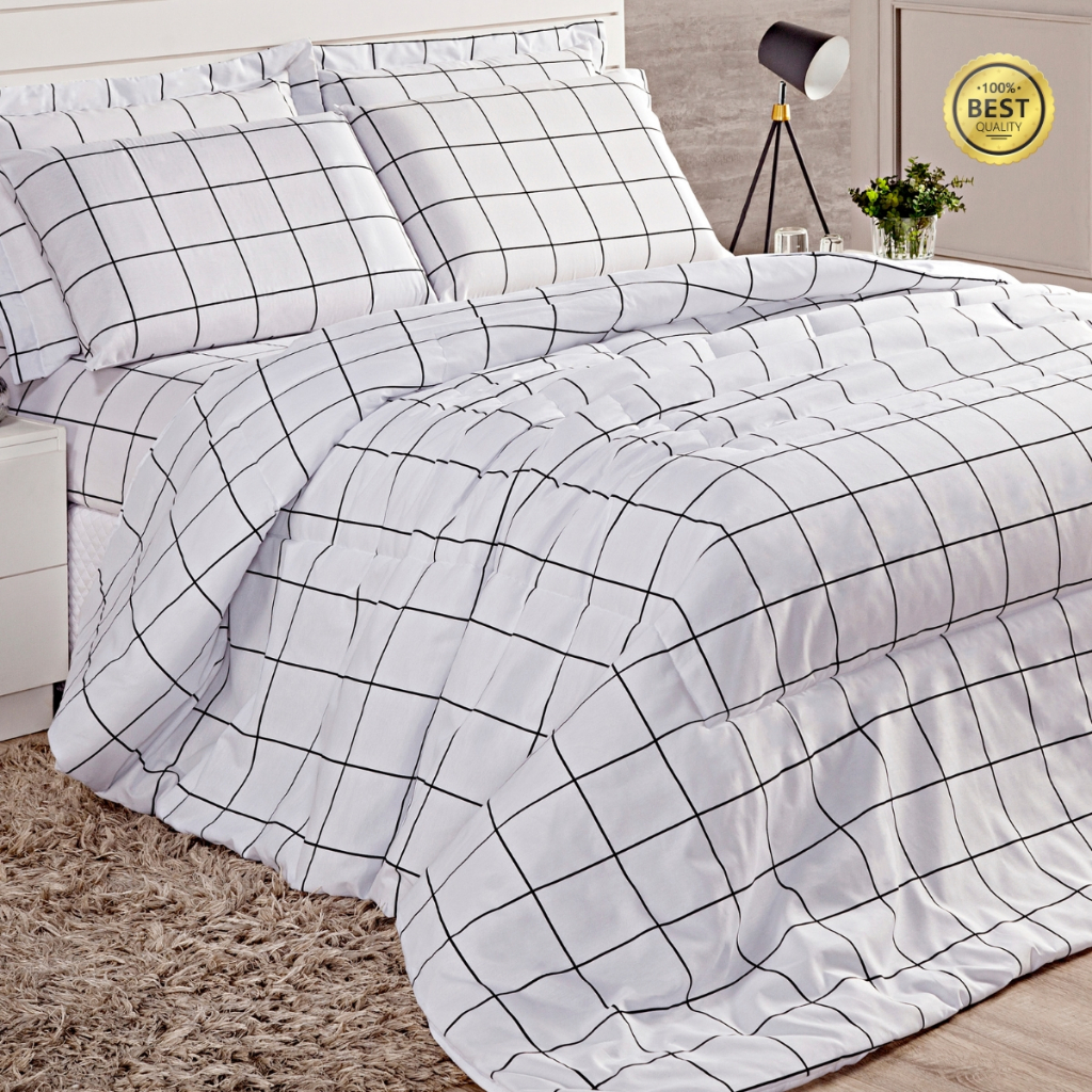 Edredom de Algodão Solteiro Queen King Atual Quadriculado Cheio Firme Moderno