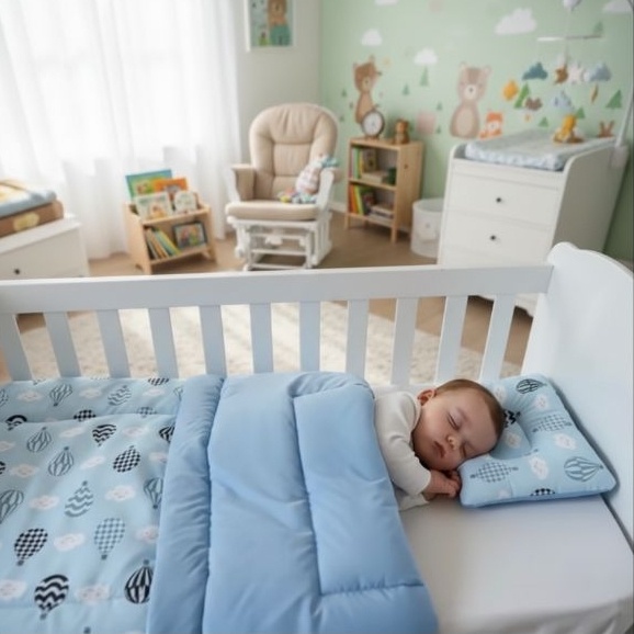 Edredom Dupla Face Para Berço 1,00 x 1,50M + Travesseiro Anatomico Tecido 100% Algodão Para Bebê RN