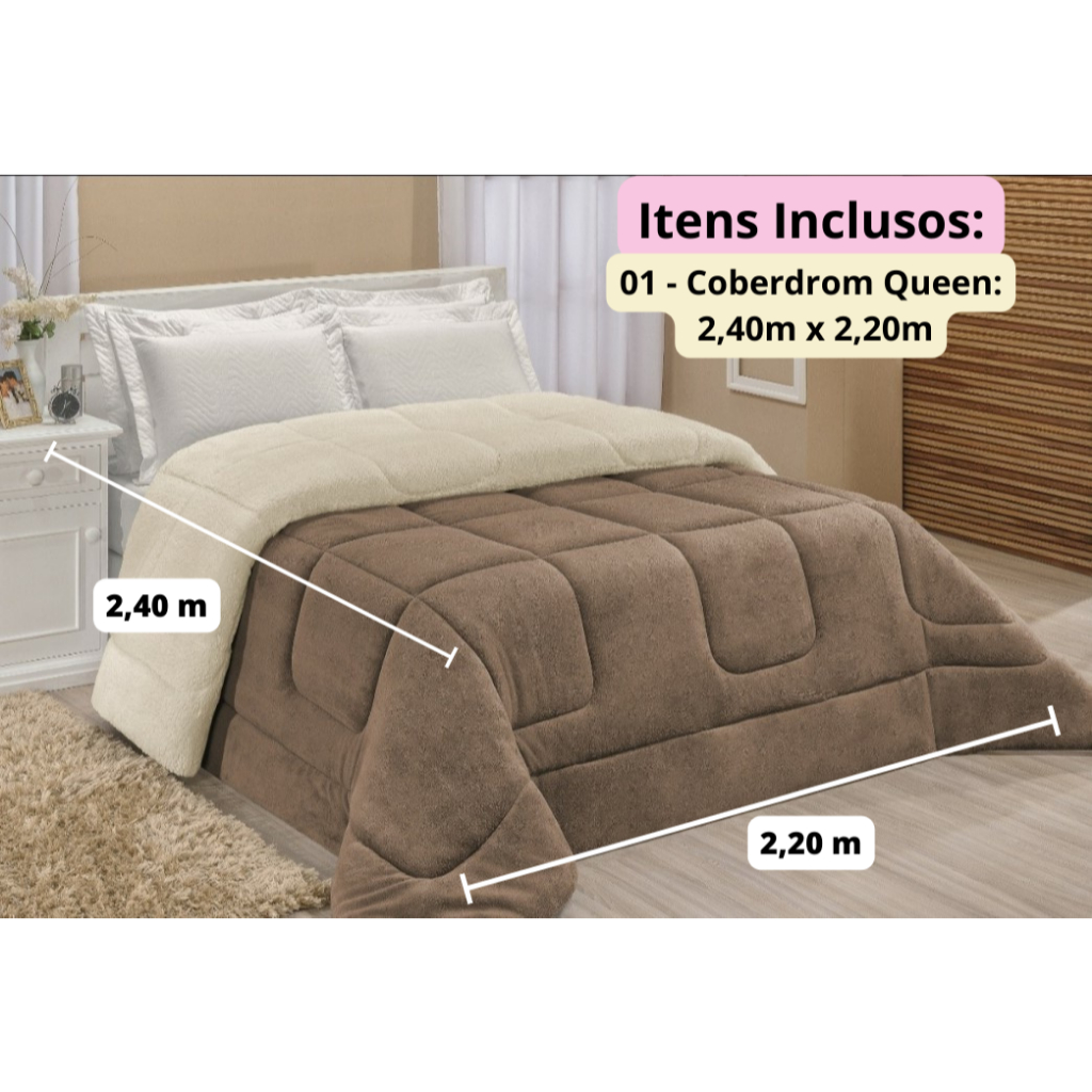 Edredom Sherpa Queen 2,40 x 2,20m Solteiro 1,60 x 2,20m Cobertor Coberdrom Macio Dupla Face