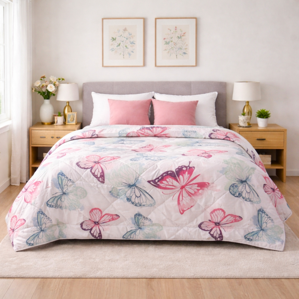 Edredom Solteiro Casal Queen Dupla Face Grosso Borboletas Percal 300 Fios Macio Dublin Inverno Leve
