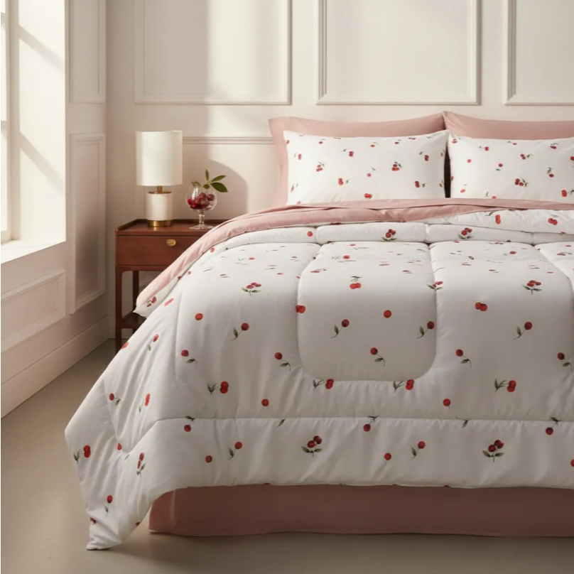 Edredom Solteiro Dupla Face Tecido Algodão 180 Fios Estampa Cereja