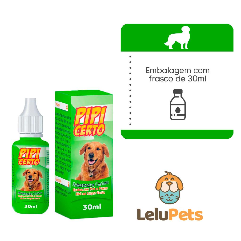 "A LeluPets nasceu de uma paixão e dedicação de aproximadamente 20 anos de experiência nessa área tão incrível. Desde o início de nossa história, já são mais de 100 mil clientes atendidos. Estamos aqui determinados em fazer a diferença, democratizando e simplificando o cuidado com o seu pet para oferecer a melhor experiência para você e seu amiguinho. Mantemos nossas orelhas em pé, atentos às novidades do mundo pet para trazê-las até você. Nós somos apaixonados por pets! O seu pet é também da nossa família! Educador Sanitário para Cães Pet Clean Pipi Certo 30ml Indicado como auxiliar no adestramento sanitário de cães com consequente proteção de tapetes, estofados e outros lugares indesejáveis visados pelos cães para fazer suas necessidades. - Indicado para cães; - Ensina o pet o lugar certo para fazer suas necessidades; - Disponível em embalagem de 30ml. "