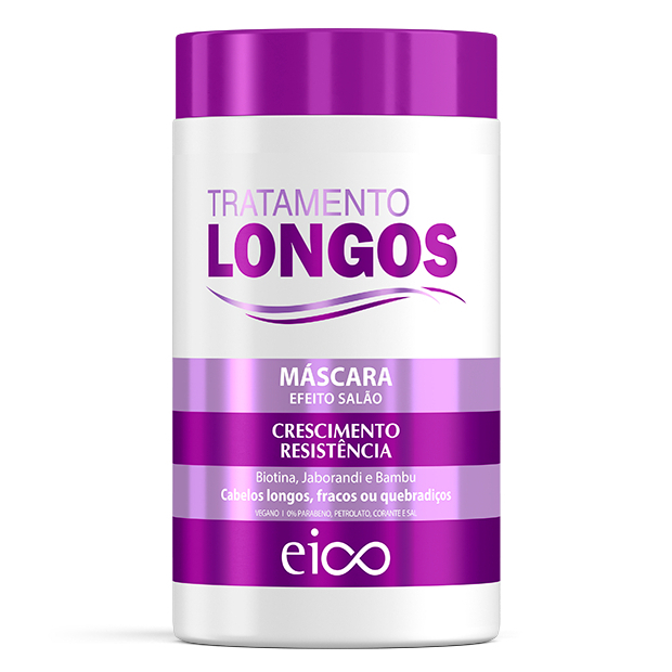 Extrato de Bambu - restaura a estrutura dos fios , da volume aos Cabelos. Óleo do café verde -brilho ,resistência, , estimula a circulação sanguínea do couro cabeludo , previne a calvície, fortalece a raiz do cabelo. Óleo de abacate - emoliente, indicado para cabelos frágeis e danificados, rico em vitamina B1, B2,A,C,D e lecitina. Óleo de oliva: Vitamina E, antioxidante, fortificante. Jaborandi: Reduz a oleosidade, previne queda, fortalece e repara os fios. Biotina: Fortifica, auxilia no crescimento, vitaminas, H, B5, B1, Ácido fólico. Contém: 01 EICO Cabelos Longos Shampoo 800 01 EICO Cabelos Longos Condicionador 750ml 01 EICO Máscara Tratamento Cabelos Longos 1kg