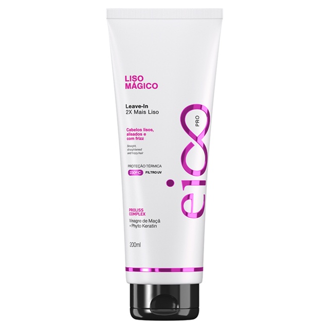 Eico Professional une tecnologia e excelência em fórmulas de alto desmpenho para um cuidado capilar avançado. A linha Liso Mágico foi desenvolvida com o exclusivo ProLiss Complex para fios impecavelmente lisos, disciplinados e radiantes. Para cabelos lisos, alisados e com frizz. O Leave-in prolonga o efeito disciplinado para cabelos até 2X mais lisos. Sua textura em creme é leve, desembaraça e hidrata os fios sem pesar. Proteção térmica até 230°C: Protege os fios sob altas temperaturas como as de secador e chapinha. Filtro UV: Protege contra os danos da luz solar. Característica/Ação PROLISS COMPLEX Tecnologia enriquecida com Vinagre de Maçã e Phyto Keratin para alinhamento e selagem de cutículas, reconstrução da fibra danificada e fortalecimento de fios que passaram por processos químicos. Os cabelos ficam disciplinados, leves, hidratados e com brilho radiante. 2X MAIS LISO* FILTRO UV PROTEÇÃO TÉRMICA ATÉ 230ºC* RESULTADOS COMPROVADOS EM LABORATÓRIO Sugestão de uso Distribua o produto nos fios higienizados, úmidos ou secos. Espalhe pelo comprimento e pontas, finalize e modele como desejar. Não é necessário enxaguar.