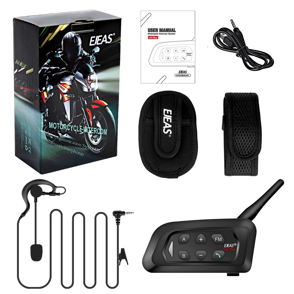 EJEAS V4C PLUS Fone De Ouvido De Intercomunicação Bluetooth , 5.1 , 4 Pessoas Falam Em Tempo real Impermeável 3 Pacotes Para Shoei AGV KYT Yamaha Honda Forza 250