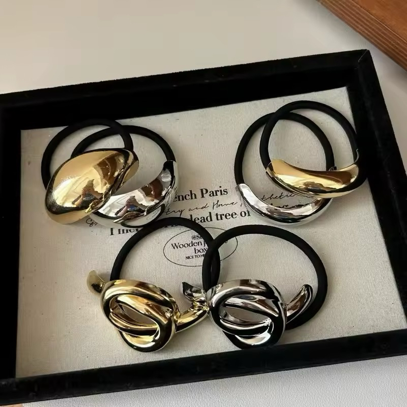Elástico de cabelo de metal Kit 6 peças mix de cores pulseiras de cabelo moda carnaval 2025