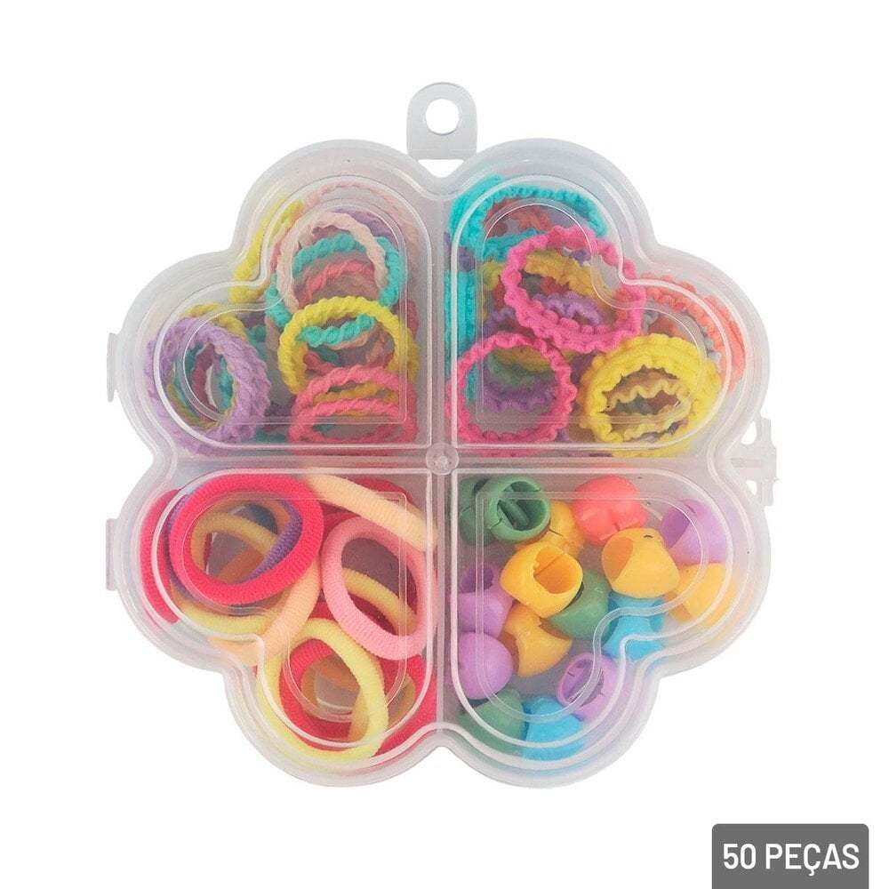 Elástico e Miçanga de Cabelo 50 Peças com Estojo Organizador