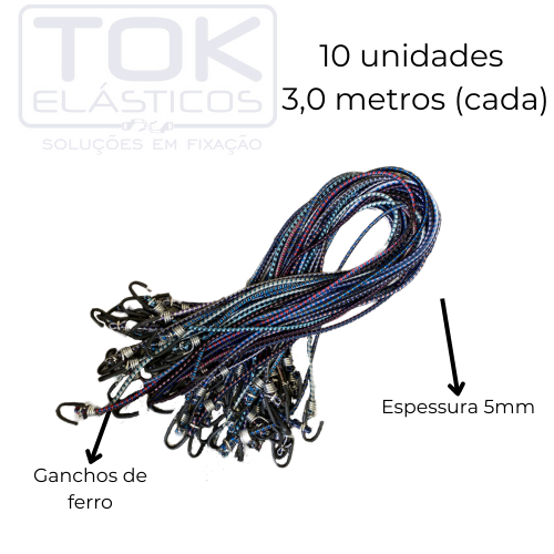 Elástico Extensor Estique 3,0mt p/ Moto e Bike - 10 unidades