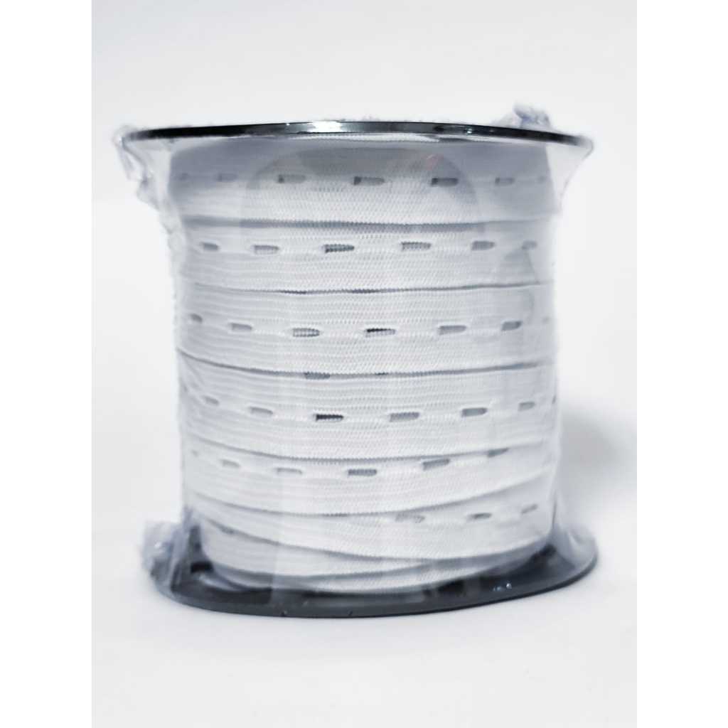 Elastico regulador caseado com Furos para encaixe de ajuste com botão, perfeito para embutir aplicar em cós de calças, shorts e pijamas peças de moda Infantil, Gestante, e outros. A principal vantagem do elástico caseado são os furos ao longo de sua extensão, que permitem um ajustado no cós das peças onde ele é usado, trás ao cós de calças, bermudas, pijamas ou shorts uma regulagem confortável e adequada de tamanho, que não aperta nem marca. ideal para para crianças em fase de crescimento e gestantes. Mais valor e resultado para você: - Melhor custo beneficio, - Cores adequadas aos diversos modelos, branco, preto e marinho escuro - Regulagem perfeita para seus clientes, na tensão certa, sem apertar de mais ou de menos. - Produto muito testado, aceita ao processos de costuras mais exigentes ao mais simples - Experiência de mais de 27 anos atendemos as grande marcas, agora trabalhando para o seu melhor resultado. Largura de 10, 15, 20 mm - rolos com 25 e 50 metros Cores branco natural, preto, azul forte marinho escuro ** Compre já a qualidade vai te surpreender !