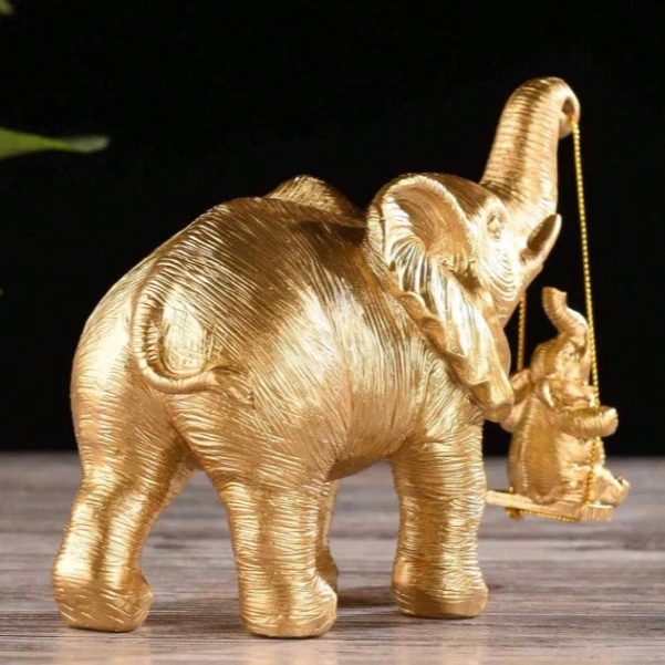 Elefante com Mini Balanço Gold Luxo Decorativo Resina