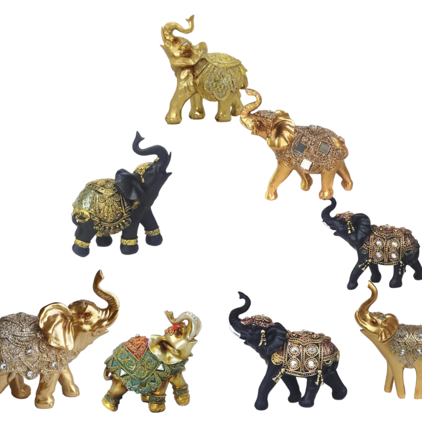 Descriç-ao 01- Elefante de Resina O elefa simboliza sabedoria, força, memória, paciência e longevidade. É associado à boa sorte, prosperidade e à capacidade de superar obstáculos, atraindo energias positivas e proteção. Culturalmente, ele também representa solidariedade, companheirismo e o poder de governar. Sabedoria e força: É considerado um símbolo de inteligência e força interior, além da sua força física, representando a capacidade de superar adversidades. Proteção e boa sorte: Acredita-se que o elefante protege contra o mal, atrai energias positivas e afasta maus presságios, sendo um símbolo de fartura e proteção. Memória e longevidade: A forte memória dos elefantes os liga aos conceitos de longevidade e sabedoria ancestral. Comunidade e solidariedade: Seu comportamento em manada representa a importância da família, da solidariedade e do companheirismo. Poder e estabilidade: Historicamente, o elefante simboliza o poder de reger, a estabilidade e o poder de superar obstáculos, sendo associado à deidade hindu Ganesha, que remove obstáculos. Sabedoria e força: É considerado um símbolo de inteligência e força interior, além da sua força física, representando a capacidade de superar adversidades. Proteção e boa sorte: Acredita-se que o elefante protege contra o mal, atrai energias positivas e afasta maus presságios, sendo um símbolo de fartura e proteção. Memória e longevidade: A forte memória dos elefantes os liga aos conceitos de longevidade e sabedoria ancestral. Comunidade e solidariedade: Seu comportamento em manada representa a importância da família, da solidariedade e do companheirismo. Poder e estabilidade: Historicamente, o elefante simboliza o poder de reger, a estabilidade e o poder de superar obstáculos