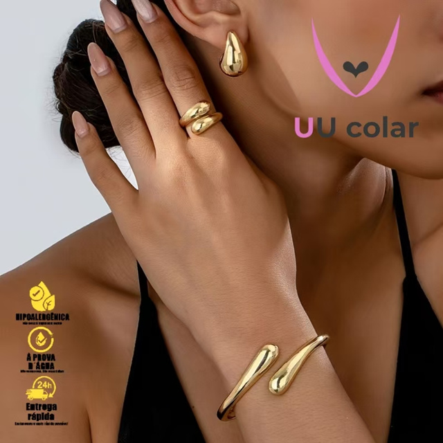 | Elegância Dourada: Conjunto de pulseira, anel e brincos em formato ... este produto | R$ 9,99 | 58% | 4.9/5 | 575 |