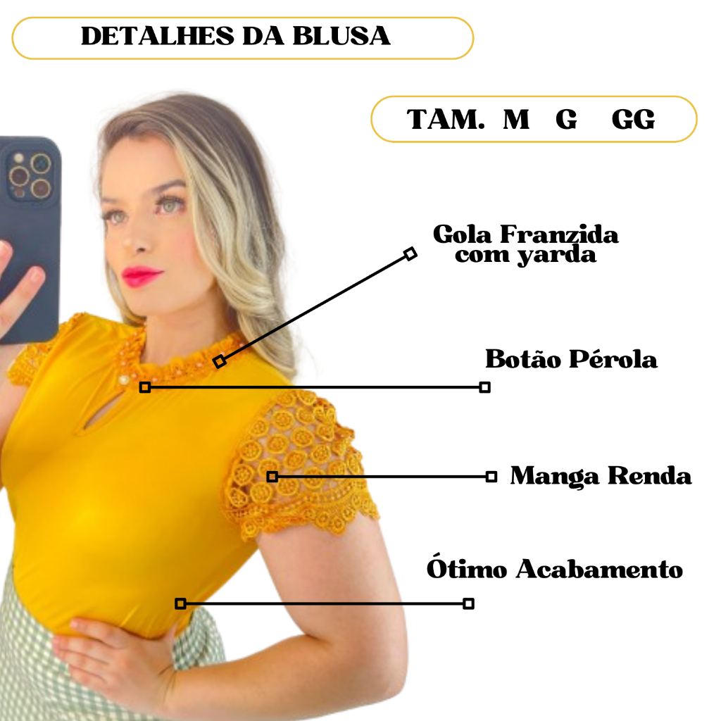 Elegante Blusa Evangélica Moda Feminina Social Elegante Casual Manga Curta Detalhe de Renda Esta blusa evangélica combina o melhor da moda feminina, oferecendo um equilíbrio perfeito entre elegância e casualidade. Com uma manga curta que proporciona conforto e movimento, é uma escolha prática para os dias mais quentes. O detalhe de renda adiciona um toque de delicadeza e sofisticação ao design, elevando instantaneamente o estilo da peça. A renda é habilmente incorporada, criando um visual refinado que é perfeito para uma variedade de ocasiões, desde eventos religiosos até encontros sociais. O corte socialmente elegante desta blusa a torna uma escolha versátil para diversas situações. Pode ser facilmente combinada com saias ou calças, proporcionando um visual elegante e contemporâneo. Feita com materiais de alta qualidade, esta blusa não só oferece estilo, mas também conforto e durabilidade. É uma peça essencial para o guarda-roupa de qualquer mulher que valorize a moda com elegância e sofisticação. ✅DESTAQUES -❤️Gola Franzida com Yarda -❤️ botão na frente -❤️Manga curta com renda -❤️Macio e Confortavel ✅DESCRIÇÕES Padrão: Simples Estilo: Casual e Elegante Tamanho: M G GG Composição: 100% Poliéster Transparente: Não Não Amassa Tecido Crepe seda ✅PACOTE INCLUI 1X Blusa ✅APRESENTAÇÃO ABIEM_STORE É Uma Marca Emergente Que Acredita No Poder Das Meninas, Comprometida Com A Oferta De Escolhas De Roupas Elegantes E Acessíveis Para Diferentes Estilos, Necessidades E Identidades. Nós Acreditamos Que A Moda Deve Ser Divertida. Depois De Todos, O Melhor Acessório Para Qualquer Aspecto É De Autoconfiança. ✅NOTAS DE COMPRA Por Favor, Gentilmente, Veja Sua Altura E A Tabela De Tamanhos Antes De Comprar. Há Diferença De 2-3% De Acordo Com A Medição Manual. Todas As Fotos De Produtos Desta Loja São 100% Tiro Real, Uma Diferença De Cor Sutil E Erro Real É Normal. Siga Nossa Loja E Descubra Novos Itens E Melhores Negócios Para Você!! ⭐️As Encomendas Serão Enviadas Dentro das 24 horas após pagamento confirmado ⭐️Frete Gatis a todo Brasil ⭐️Todos Os Itens São Prontos Para Envio MUITO OBRIGADO