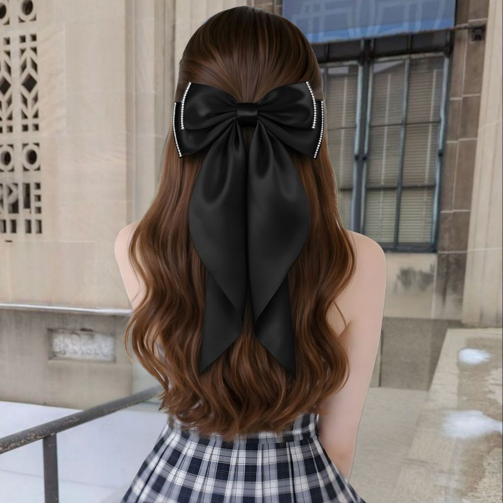 Elegante Clipe De Cabelo Grande Com Laço com Brilhos nas Laterais e no Meio De Cetim tecido 2025