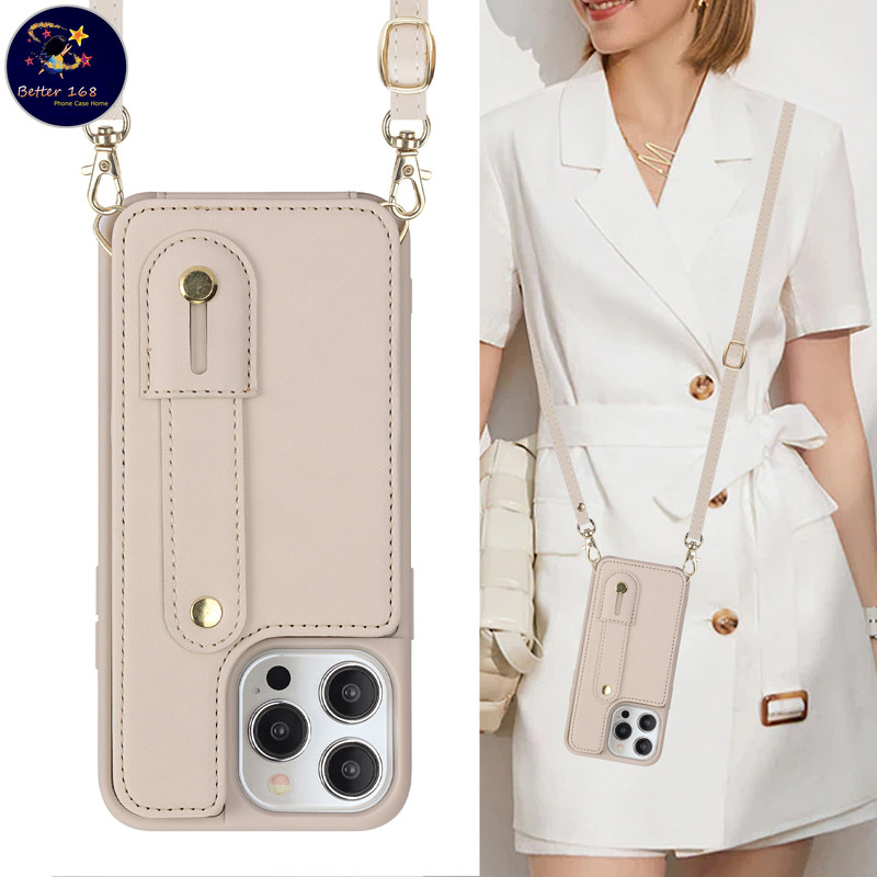 Elegante Couro Pu Crossbody Alça De Pulso Capa De Telefone Compatível Com Iphone 11 12 13 14 15 16 Pro Max Plus À Prova