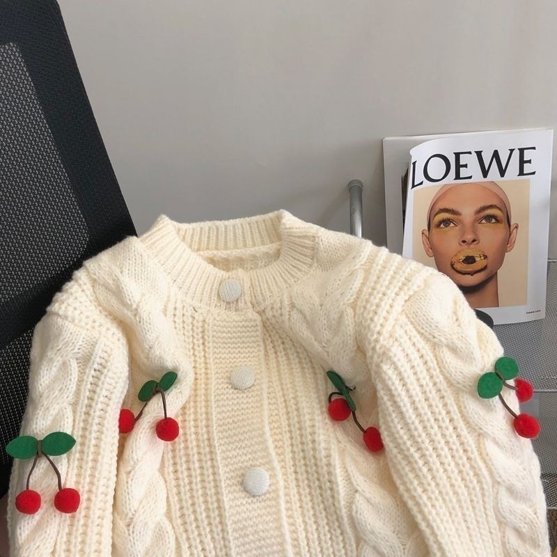 Elegante Vintage Office Malhas De Escritório Cardigan Outono Inverno Nova Massa Frita Twists Sweater Tridimensional