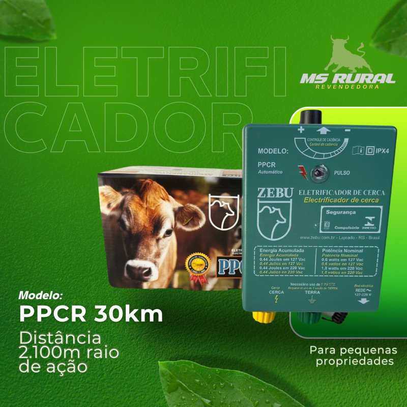 Eletrificador De Cerca Elétrica Rural Gado Aparelho De Choque Zebu PPCR 30 KM Automático Bivolt