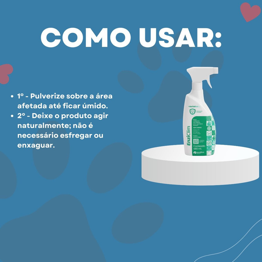 ENZICLIM – SOLUÇÃO NATURAL PARA ELIMINAÇÃO DE ODORES E MANCHAS CAUSADOS POR PETS Seu pet já fez xixi fora do lugar e o cheiro ficou impregnado? Você tem dificuldades para remover manchas de urina, fezes ou vômito sem usar produtos químicos agressivos? O EnziClim é a solução biotecnológica perfeita para eliminar odores e manchas de forma segura, sem prejudicar a saúde do seu pet e da sua família. Benefícios: Ação natural: Utiliza microrganismos vivos que degradam resíduos orgânicos, eliminando manchas e odores sem produtos químicos agressivos. Versatilidade: Pode ser aplicado em pisos, tapetes, sofás e outras superfícies afetadas por resíduos de pets. Fácil aplicação: Disponível em spray, permitindo uma aplicação prática e sem esforço. Seguro: Produto sem cheiro, seguro para uso em ambientes com animais e pessoas. Composição Técnica: Microrganismos vivos Conservante (Álcool etílico) Solvente (Água) Modo de Uso: Antes de aplicar o produto, teste em uma pequena área da superfície desejada. Remova o excesso de resíduos orgânicos sólidos ou líquidos com um pano. Agite bem o frasco de EnziClim. Borrife o produto no local até cobrir toda a área afetada. Deixe secar naturalmente. Repita a aplicação, se necessário. Recomendações: Não aplique o produto diretamente em pessoas, animais, plantas ou alimentos. Mantenha fora do alcance de crianças e animais domésticos. Evite ingestão e inalação do produto. Armazene em local fresco e ao abrigo da luz solar direta para preservar sua eficácia. DÚVIDAS FREQUENTES O EnziClim remove completamente o cheiro de urina dos pets? Sim! A fórmula com microrganismos vivos atua na degradação dos resíduos orgânicos, eliminando odores e prevenindo novas marcações territoriais. Posso usar o EnziClim em qualquer tipo de piso? Sim, ele pode ser aplicado em pisos frios, laminados, porcelanatos, entre outros. Sempre teste em uma pequena área antes da aplicação total. O produto é seguro para pets e crianças? Sim, sua fórmula não contém substâncias tóxicas e é segura quando utilizada conforme as recomendações. Pode ser usado em tecidos como sofás e tapetes? Sim! O EnziClim é eficaz na remoção de manchas e odores de tecidos. Apenas faça um teste prévio em uma pequena área antes da aplicação total. IMPORTANTE: As informações acima são fornecidas pelo fabricante. Antes de utilizar qualquer produto no seu ambiente, leia atentamente as instruções e recomendações de uso. SOBRE NÓS – MEDVET Há 10 anos, a MedVet dedica-se ao bem-estar animal, oferecendo produtos e serviços de qualidade para garantir a saúde e a felicidade dos pets. Nossa equipe é apaixonada pelo que faz e busca constantemente superar as expectativas dos nossos clientes. A satisfação de cada tutor e o bem-estar de cada pet são nossa motivação diária. Obrigado por confiar na MedVet. Estamos juntos, cuidando do que realmente importa!