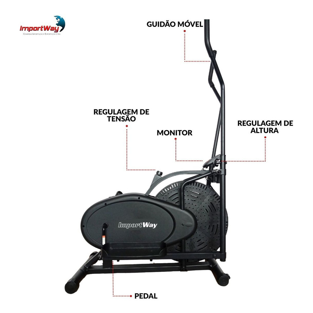 Elíptico Com Resistência a Ar Importway Suporta Até 150kg Ideal Para Treinos Sem Impacto e Queima de Calorias