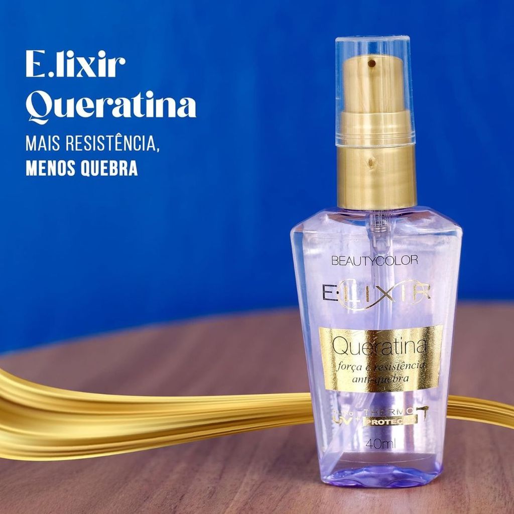 Elixir BeautyColor Óleo Nutritivo Queratina - Força e Resistência Anti-Quebra 40ml O Elixir BeautyColor Óleo Nutritivo Queratina foi desenvolvido para fortalecer profundamente os fios, combater a quebra e devolver a resistência natural do cabelo. Sua fórmula enriquecida com óleos nutritivos e Queratina age diretamente na fibra capilar, reparando danos, selando as cutículas e deixando o cabelo mais alinhado, forte e brilhante desde a primeira aplicação. Com textura leve que não pesa, o elixir forma um escudo protetor contra agressões externas como calor, poluição e química, garantindo maior durabilidade da saúde dos fios. Ideal para cabelos fracos, quebradiços, elásticos ou que passam por processos químicos. Benefícios Reforça a fibra capilar com Queratina. Combate a quebra e aumenta a resistência. Nutrição profunda com óleos poderosos. Reduz frizz e alinha instantaneamente. Brilho imediato e maciez duradoura. Forma barreira protetora contra calor e danos. Não pesa e não deixa aspecto oleoso. Modo de Uso Aplique algumas gotas nas mãos. Espalhe pelos fios úmidos ou secos, evitando a raiz. Finalize como preferir: escova, prancha ou secagem natural. Para manutenção diária, reaplique nas pontas quando necessário.
