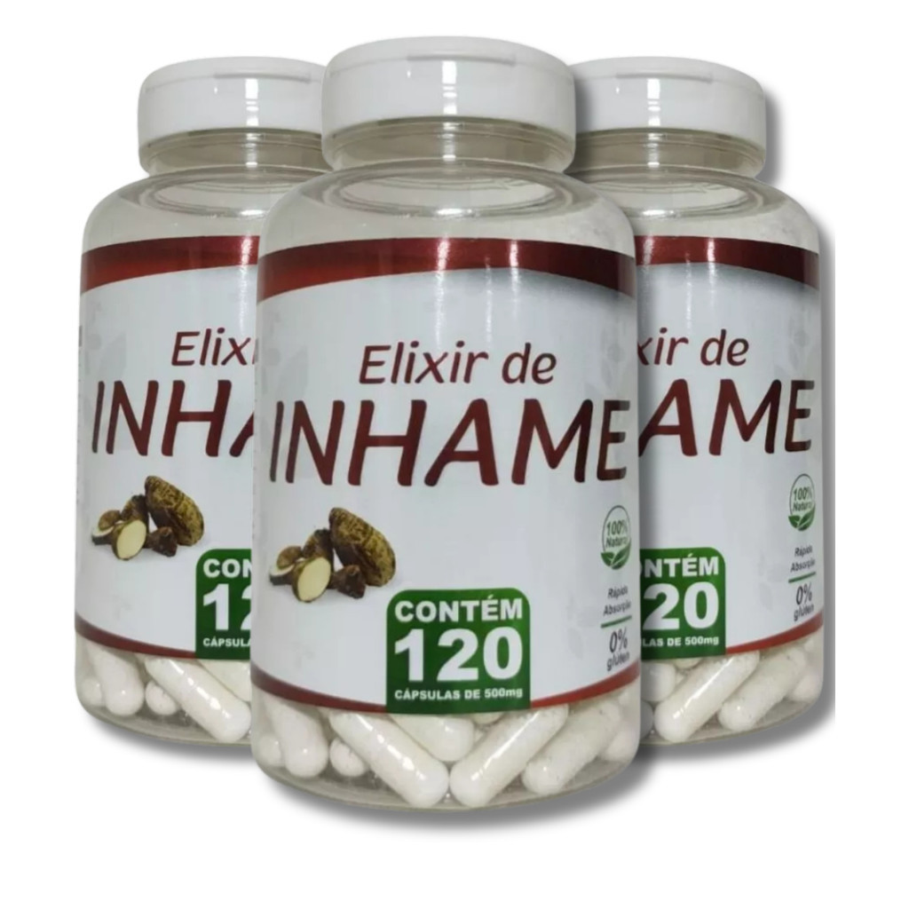 Elixir de Inhame - 100% natural -120 Cápsulas de 500 mg - Kit com 1,2 e 3 Potes NatuErvas