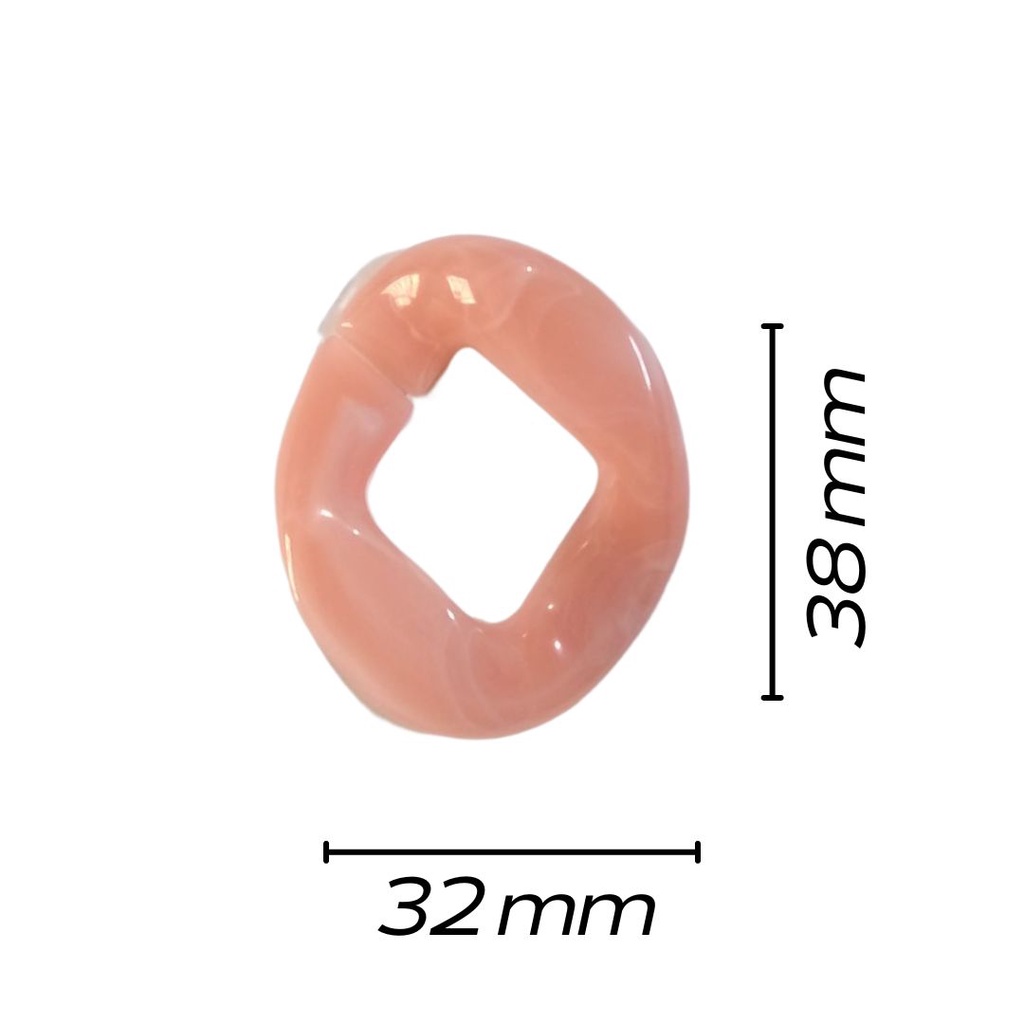 Elo de corrente em acrílico, ideal para uso em diversas peças de artesanato, alça de bolsa e biju. . Contém 15 unidades, em acabamentos variados; Brilhante de cor sólida; Frost (acabamento translúcido com aparência de gelo); Tipo mármore brilhante (pode haver variação de tonalidade entre as peças, normal para esse tipo de acabamento marmorizado); Acetinado ( acabamento fosco levemente acetinado ) . Valor referente a um pacote com 15 unidades, demais itens vendidos separadamente. . Medidas 32 x 38 mm; . 15 peças desse elo fazem aproximadamente 32 cm de corrente
