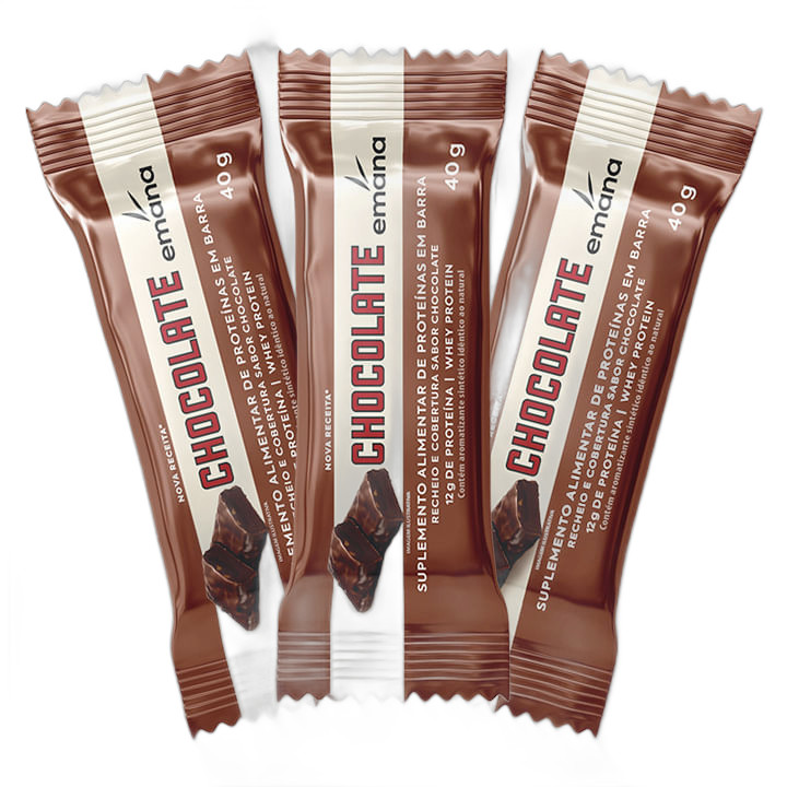 Emana Barrinha de Proteina Sabor Chocolate 40g - Kit 3 unidades
