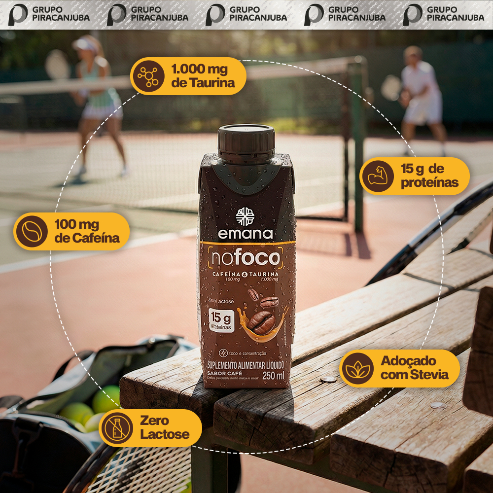 Suplemento Alimentar Líquido NoFoco 250ml Emana – Sabor Café O NoFoco Emana 250ml é um suplemento alimentar líquido desenvolvido para quem busca energia, foco e concentração no dia a dia. Com fórmula exclusiva, combina 100 mg de cafeína e 1.000 mg de taurina, dois ingredientes reconhecidos por seu efeito estimulante e de suporte cognitivo, ajudando a manter a mente ativa e o corpo em alta performance. Além disso, oferece 15g de proteínas por porção, contribuindo para a manutenção e recuperação muscular, tornando-se ideal para praticantes de atividade física, estudantes, profissionais e todos que precisam de mais disposição mental e física. Principais Benefícios: ✅ Mais energia e disposição: com cafeína e taurina que auxiliam no combate ao cansaço físico e mental. ✅ Foco e concentração: ideal para momentos de estudo, trabalho intenso ou treinos. ✅ Alto teor de proteínas (15g): auxilia na manutenção e construção muscular. ✅ Zero lactose: pode ser consumido por intolerantes à lactose. ✅ Pronto para beber: prático para o dia a dia, basta agitar e consumir. ✅ Delicioso sabor café: perfeito para quem aprecia a energia e o sabor marcante do café. Informações Técnicas: Marca: Emana Linha: NoFoco Tipo: Suplemento Alimentar Líquido Sabor: Café Quantidade: 12 unidades Proteínas: 15 g Cafeína: 100 mg Taurina: 1.000 mg Zero lactose Contém aromatizante sintético idêntico ao natural Como Consumir: Agite bem antes de beber. Pode ser consumido gelado para maior refrescância. Ideal antes dos treinos, durante estudos, no trabalho ou em qualquer momento que necessite de foco e energia extra. O NoFoco Emana 250ml sabor café é a escolha perfeita para quem precisa de energia, foco e proteína em um único suplemento, aliado à praticidade de uma bebida pronta para consumo. Sobre a Emana Emana é uma marca de suplementos com foco em nutrição e bem-estar. Criada em 2021 pelo empresário e apresentador Rodrigo Hilbert, juntamente com o sócio, Eduardo Cama, a Emana tem no portfólio uma ampla linha de produtos, entre vitaminas, encapsulados, proteínas, shots funcionais e gomas. Em 2024, a marca passa a integrar o rol de negócios do Grupo Piracanjuba. O propósito da Emana é alcançar cada vez mais pessoas que buscam informação sobre saúde e acreditam na transformação de seu dia a dia a partir das boas escolhas alimentícias.