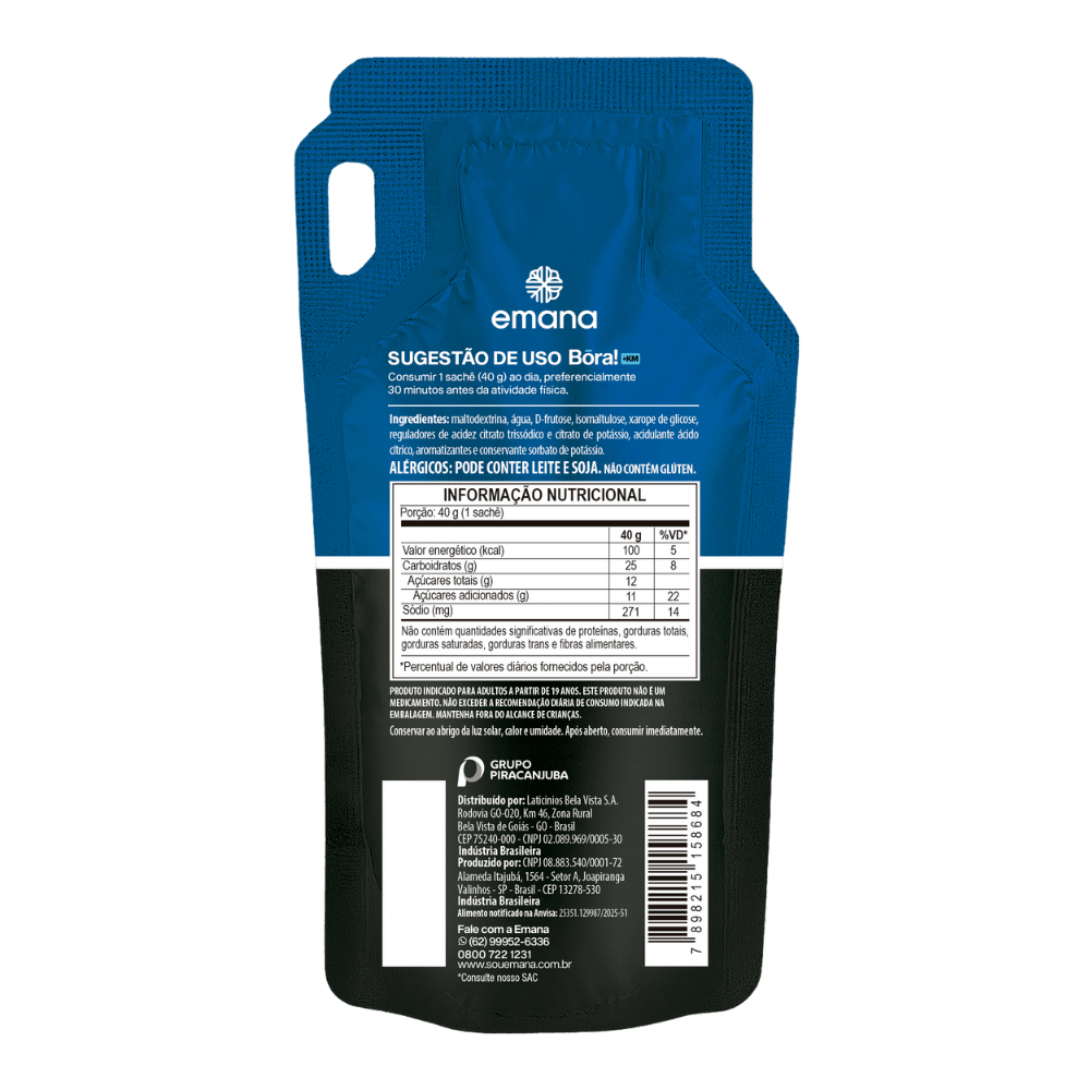 A mesma qualidade, em uma nova embalagem! Estamos atualizando nossas embalagens e, durante esse período, seu produto pode ser entregue na versão anterior. Fique tranquilo, a qualidade Emana continua a mesma em ambas as versões. O +KM Gel Energético Emana é um suplemento alimentar prático e altamente eficaz, desenvolvido especialmente para quem busca energia rápida e sustentada durante treinos e provas de alta intensidade. Com um delicioso sabor natural de água de coco, ele combina carboidratos de diferentes velocidades de absorção, vitaminas antioxidantes (C e E) e eletrólitos essenciais, garantindo melhor desempenho e hidratação ao longo do exercício. Durante a prática esportiva, o corpo utiliza a glicose como principal fonte de energia. O Gel Energético +KM Emana repõe rapidamente essa energia, mantendo a performance e evitando a fadiga muscular. Sua fórmula contém Palatinose™ (isomaltulose), um carboidrato de baixo índice glicêmico, que libera energia de forma gradual e constante, prevenindo picos de glicose e mantendo o rendimento por mais tempo.