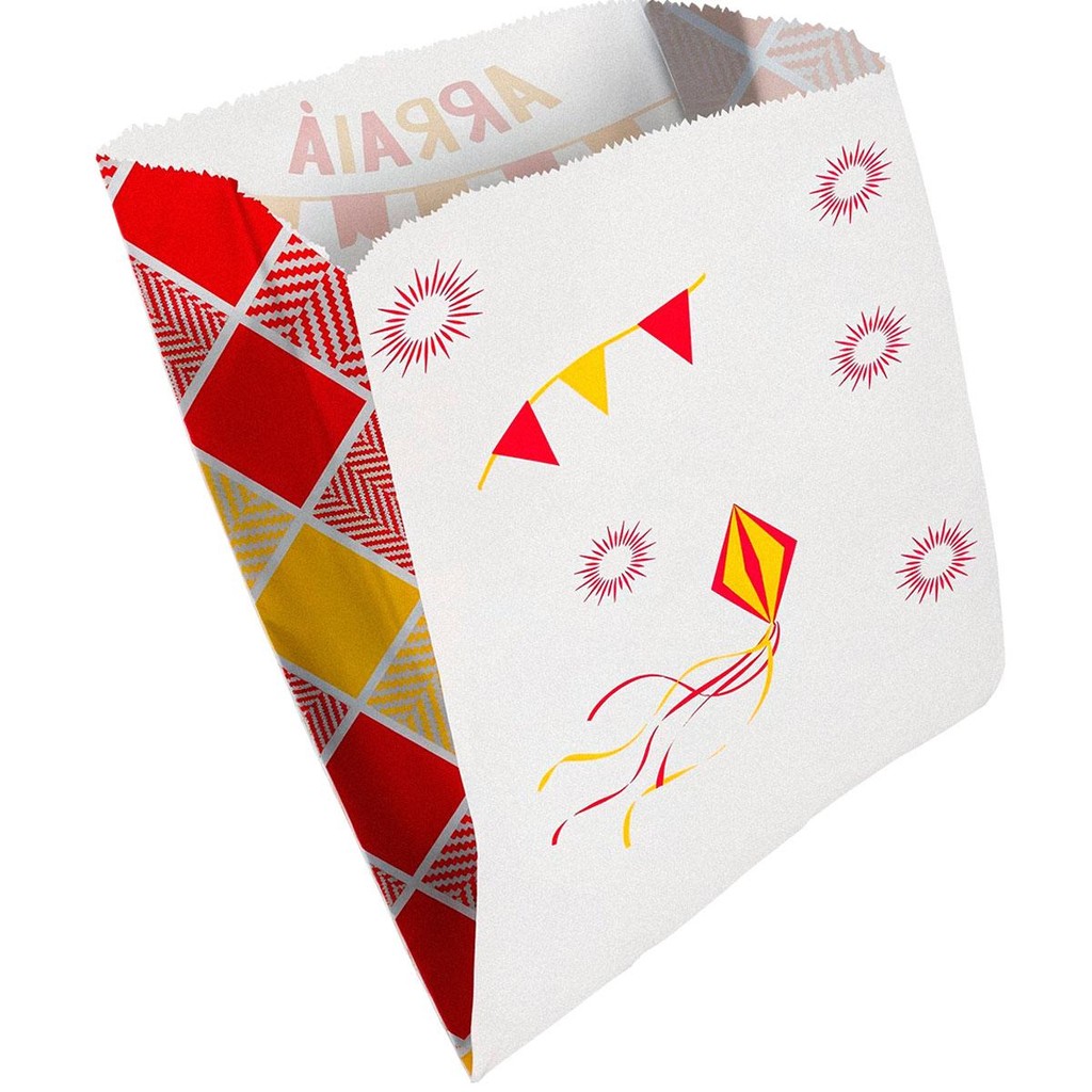Embalagem Descartável de Festa Junina Food Truck 50 Saquinhos de Papel Divertida