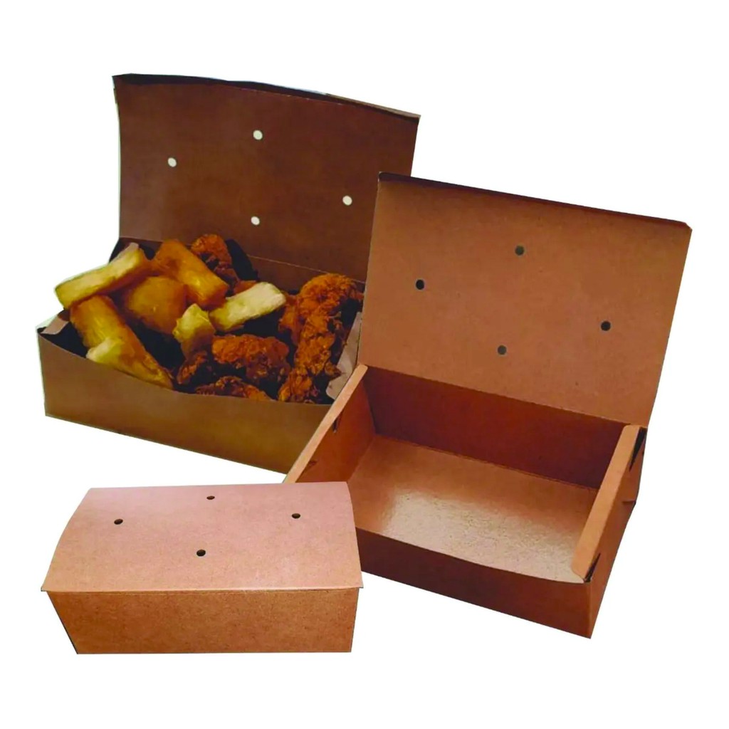 Embalagem Kraft para delivery com respiro, plastificação interna, respiro ideal para fritura